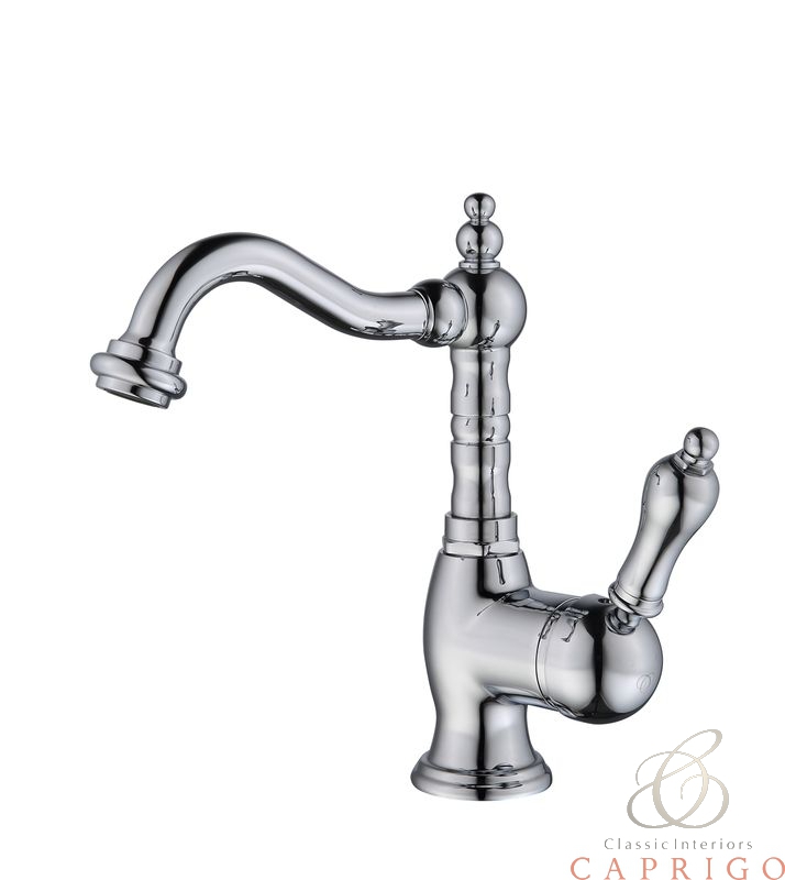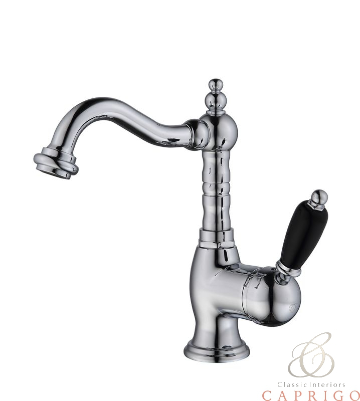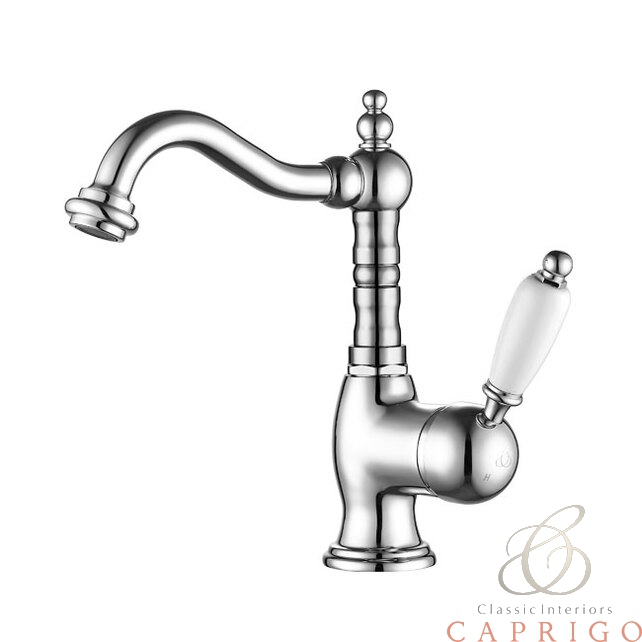 Хромированный смеситель для умывальника ADRIA–Uno,с донным клапаном и подводкой, поворотный излив