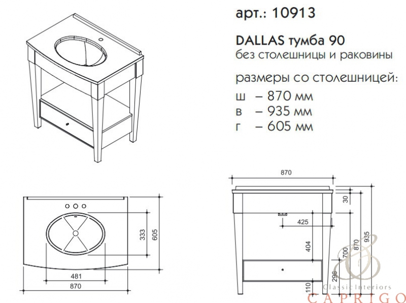 Тумба для столешницы Dallas 90 производится только в отделках цветными эмалями без патинирования.