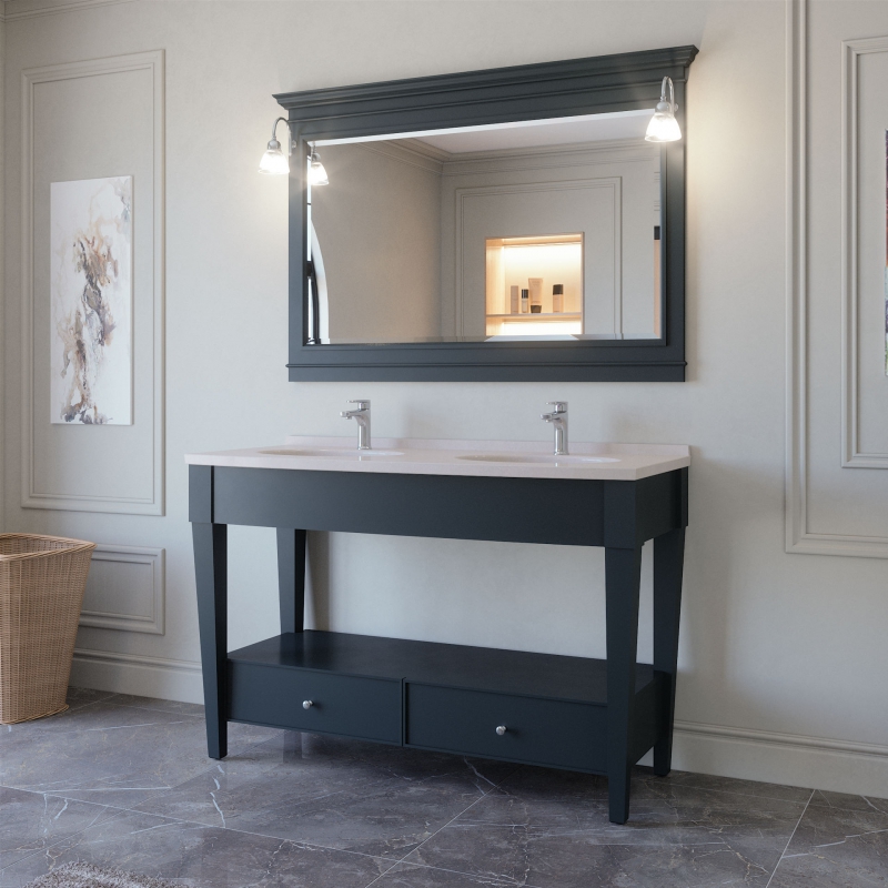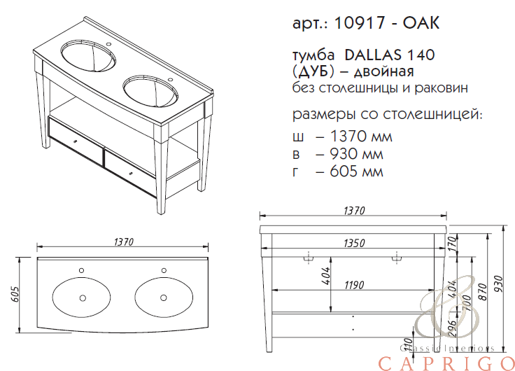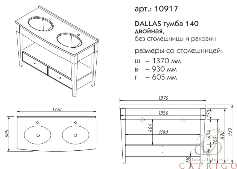 Тумба для столешницы DALLAS 140 производится в отделках реестра CLASSIC, возможно производство в отделкe ДУБ без патинирования.В комплекте два выдвижных ящика и две врезных раковины.Большой выбор материалов столешниц и вариантов фансовых раковин.