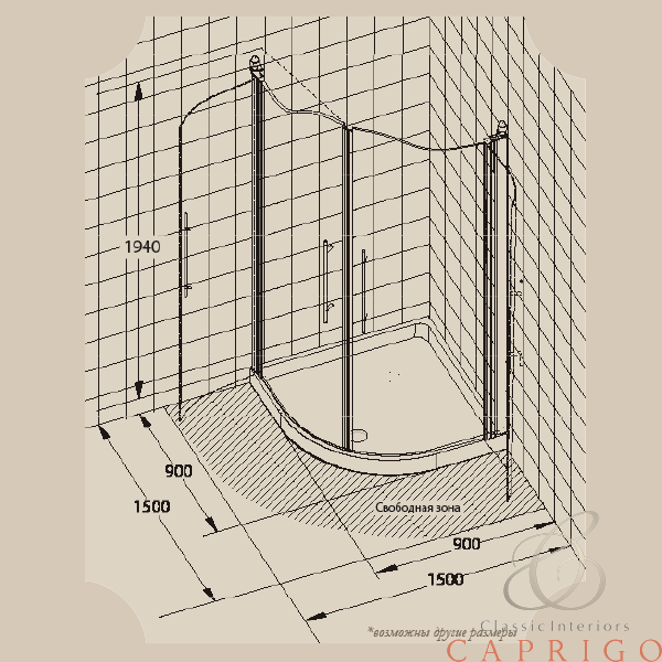 DIADEMA Душевая кабина угловая R90xH195 см. 2 распашные двери, стекло проз/дек от производителя Migliore
