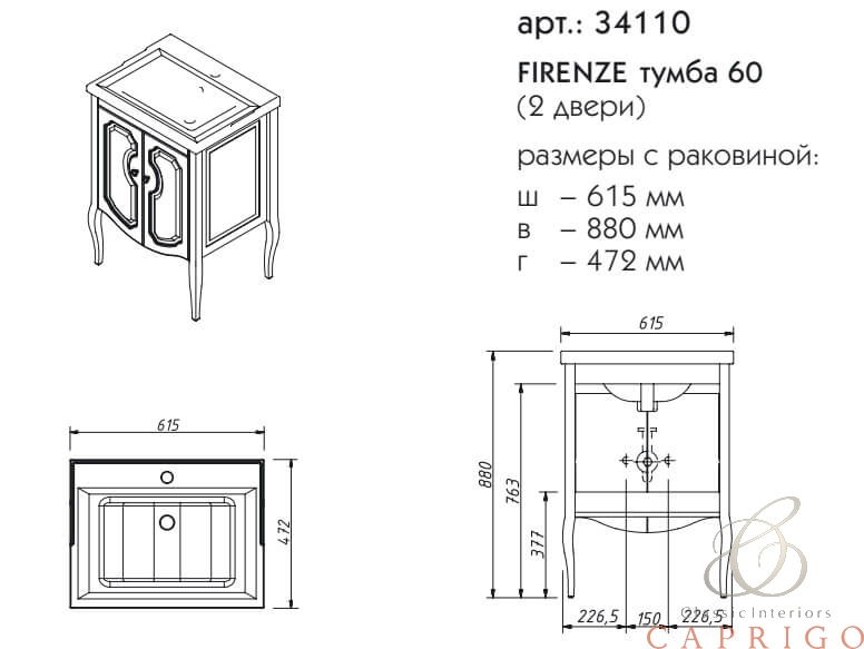 Напольная тумба FIRENZE 60 см шириной с раковиной.Производится по заказ в любых отделках"SOFTTOUCH" из реестра отделок CONCEPT.Оснащена двумя дверьми. Отдельно продается фаянсовая раковина.