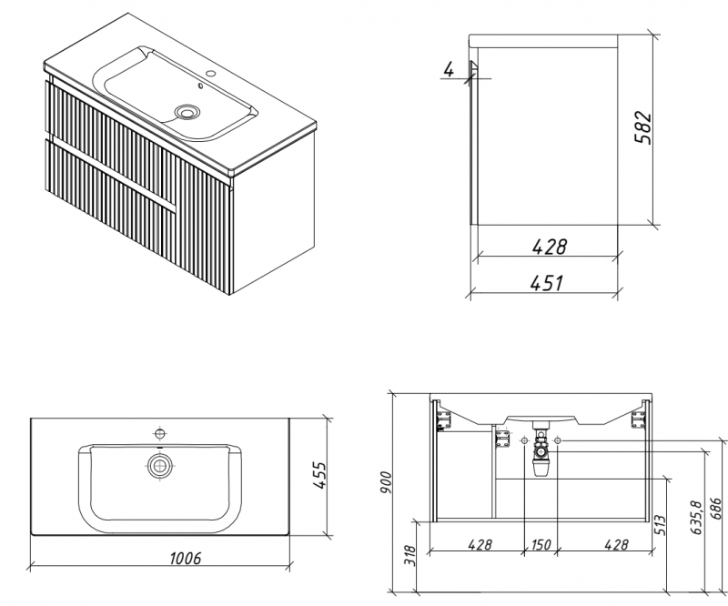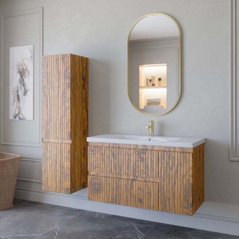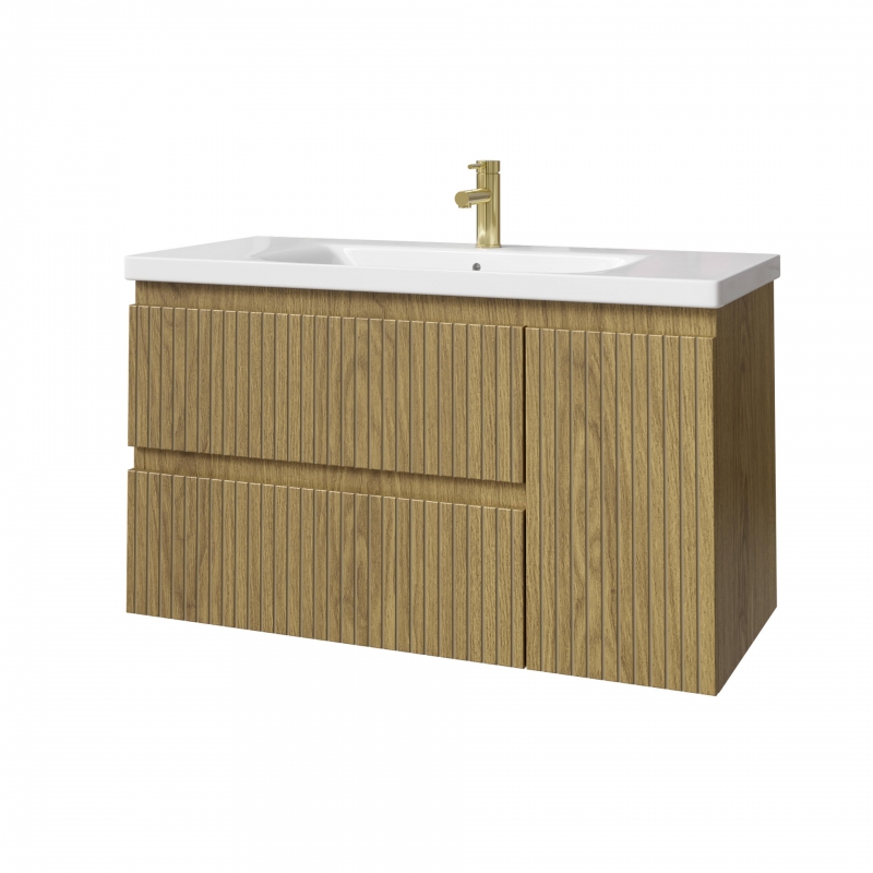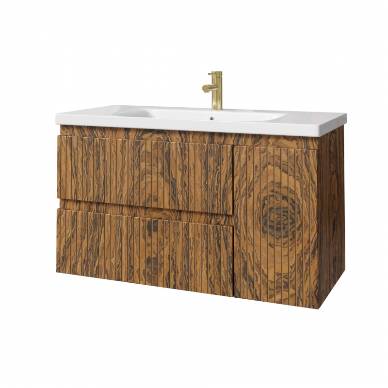 Тумба подвесная для раковины 100см с 2 ящ.и и 1 дверью. С фрезеровкой на фасадах. Выпускается в отделках Натуральным Шпоном.