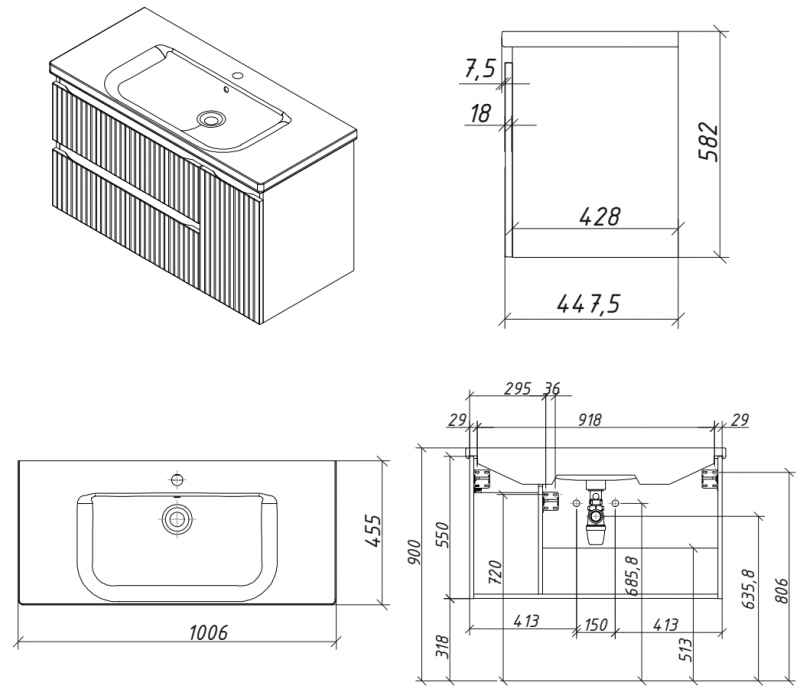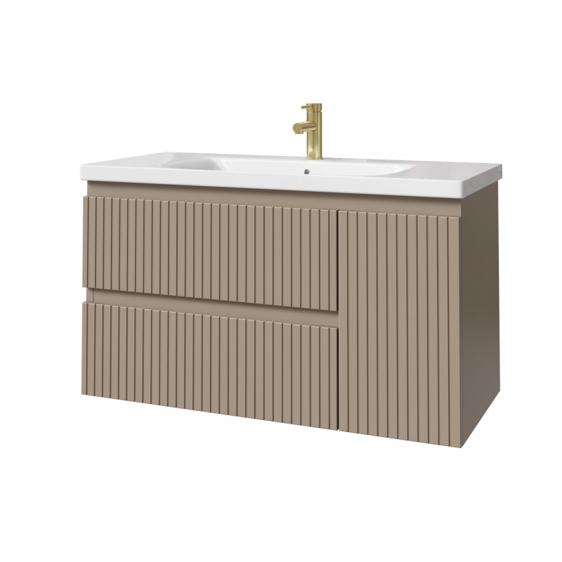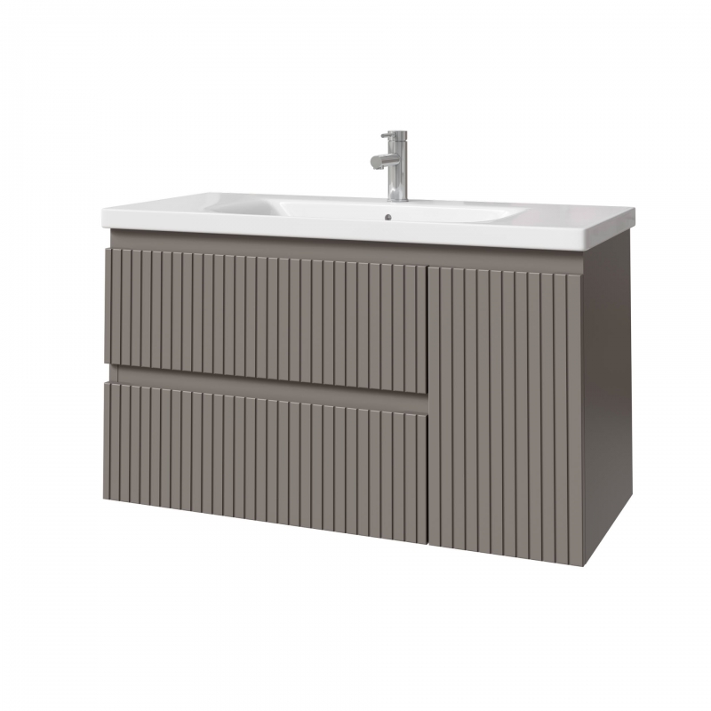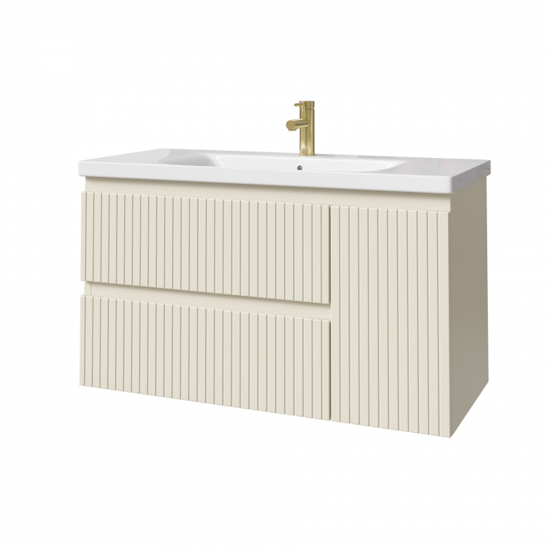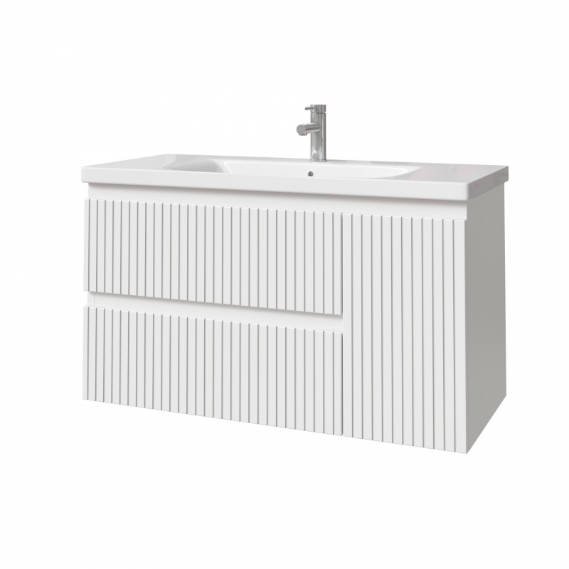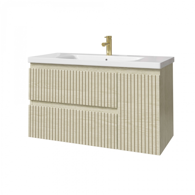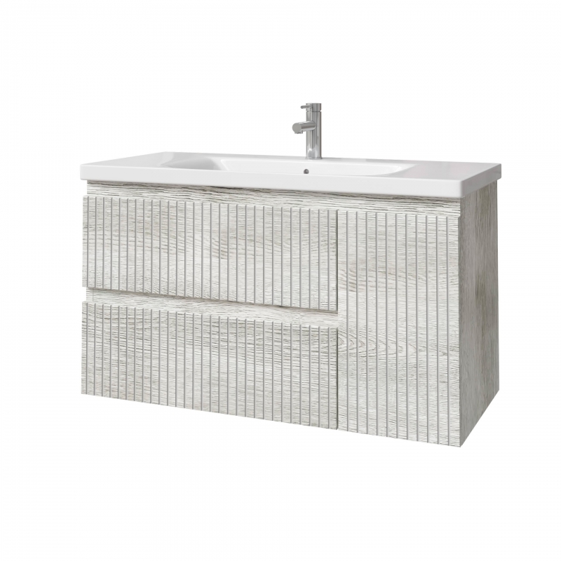 Тумба подвесная для раковины 100см с 2 ящ.и и 1 дверью. С фрезеровкой на фасадах. Выпускается в отделках из реестра MODERN.
