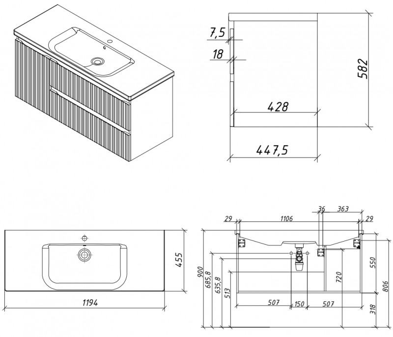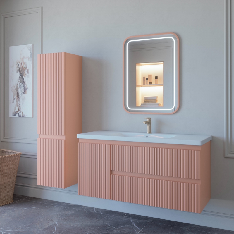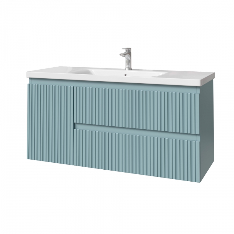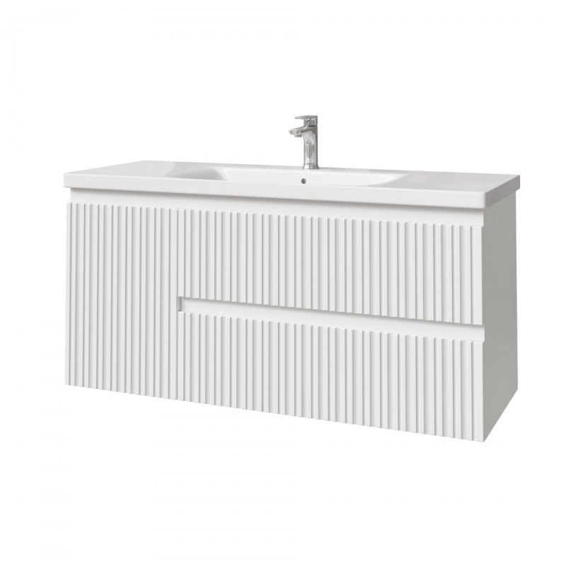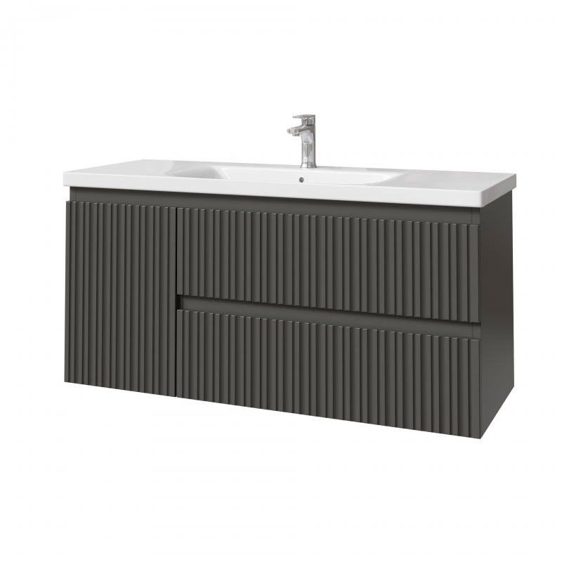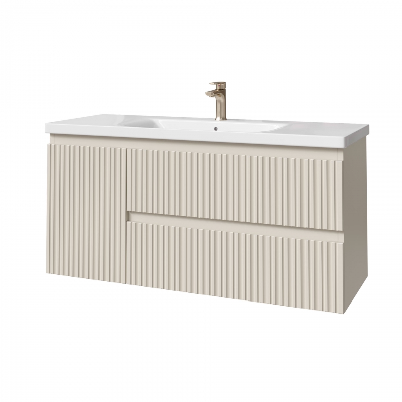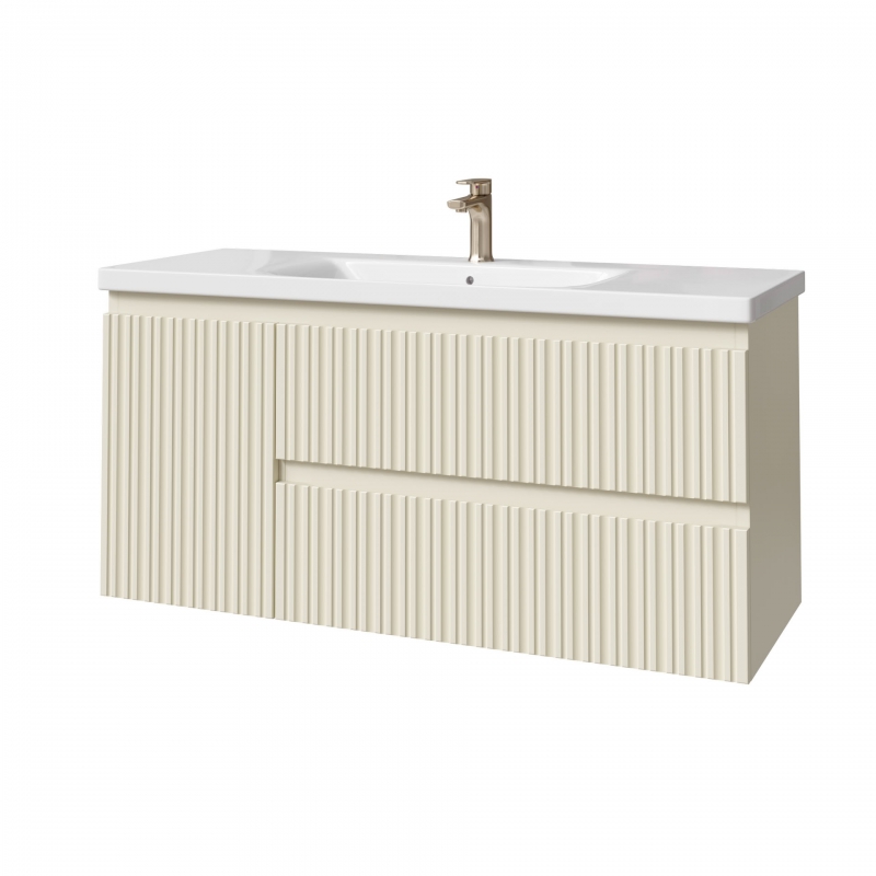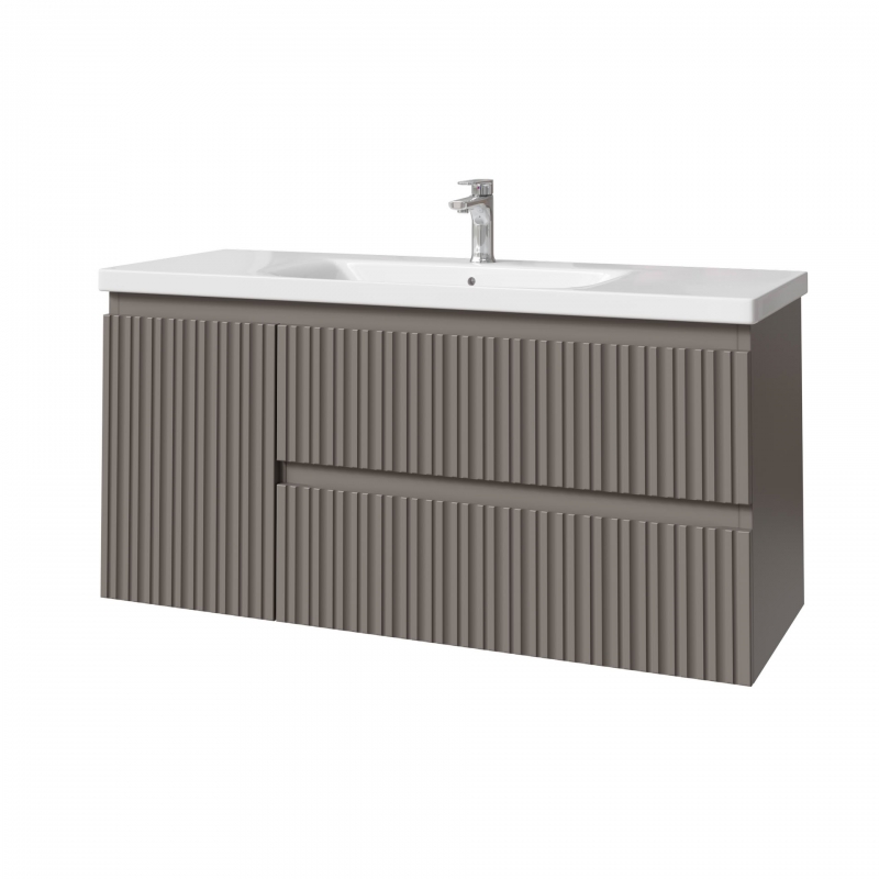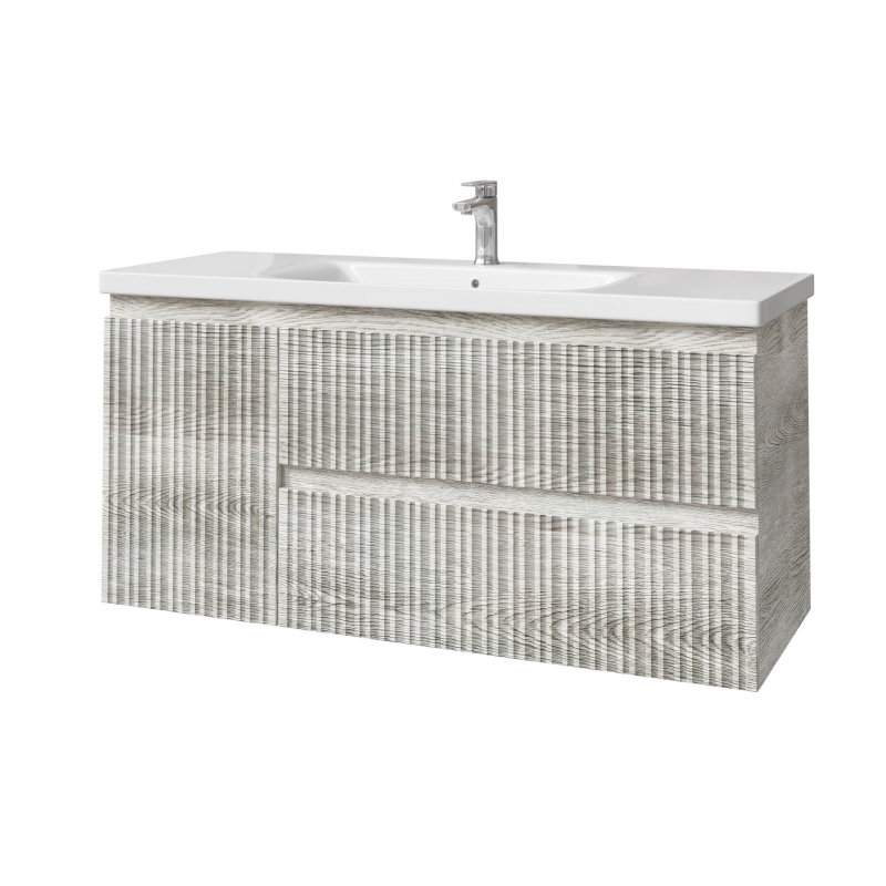 Тумба подвесная для раковины 120см с 2 ящ.и и 1 дверью. С фрезеровкой на фасадах. Выпускается в отделках из реестра MODERN.