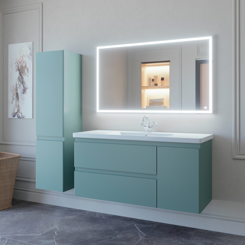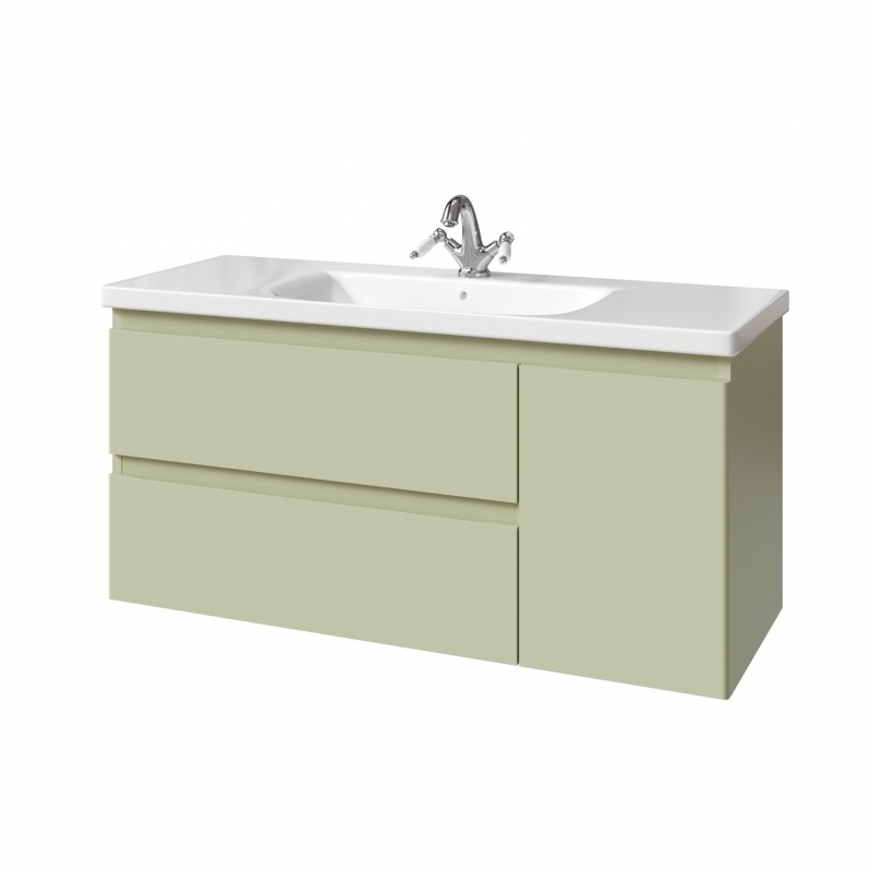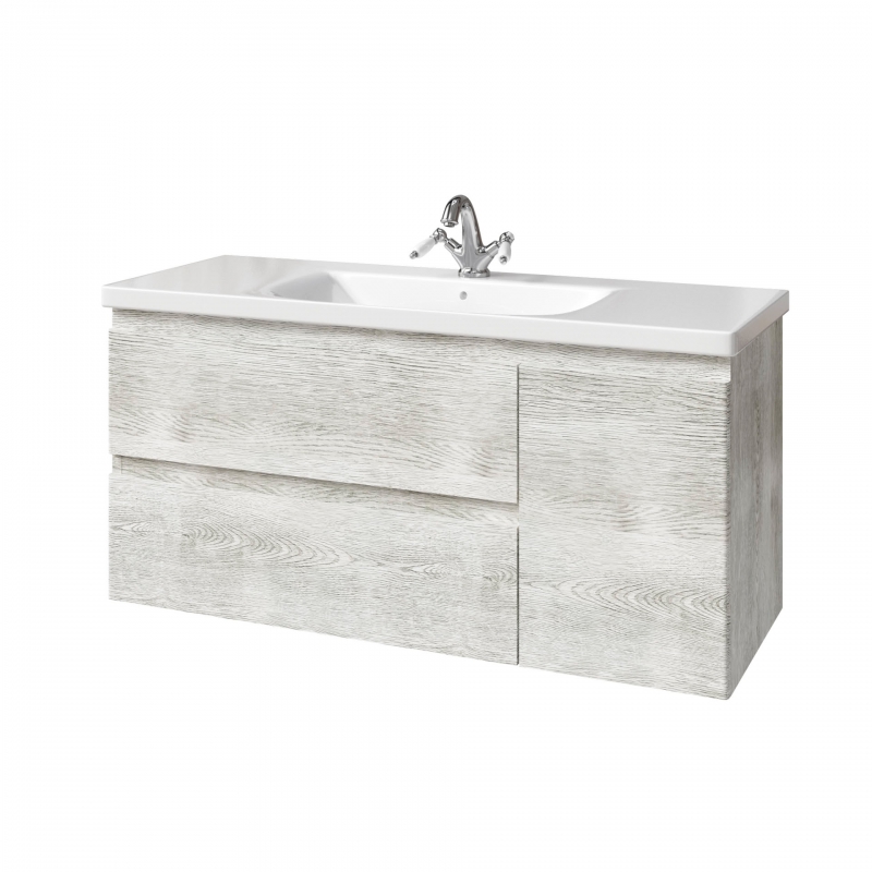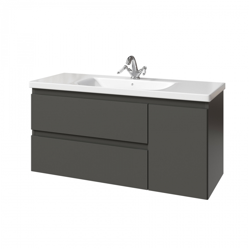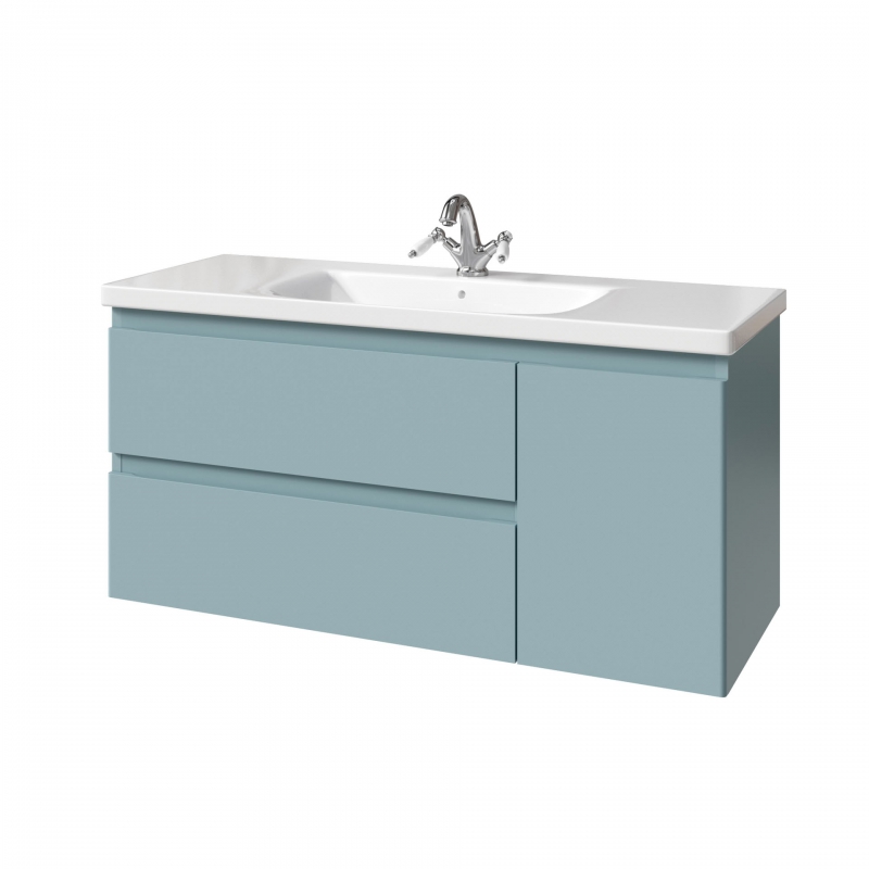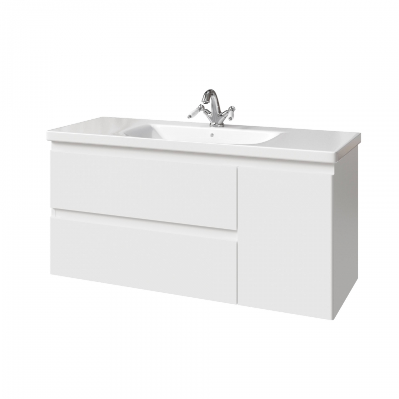 Тумба подвесная для раковины 120см с 2 ящиками и 1 дверью (справа). Ручки интегрированные в фасадах. Выпускается в Матовых и Текстурированных отделках из реестра MODERN (ограничение по глянцевым отделкам).