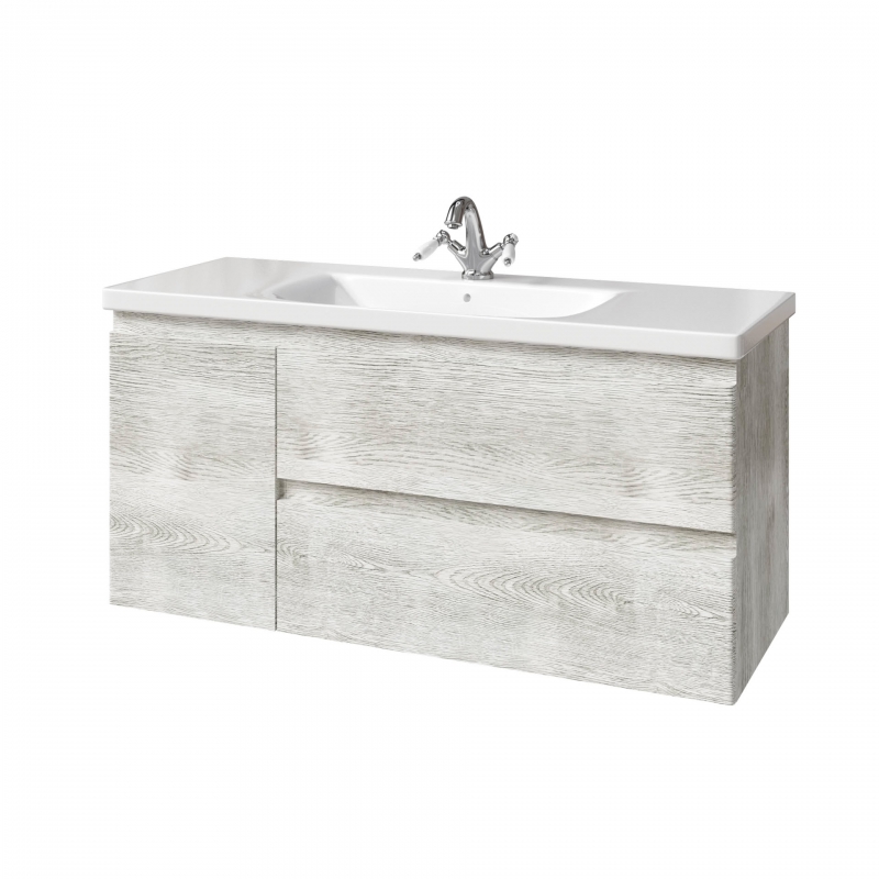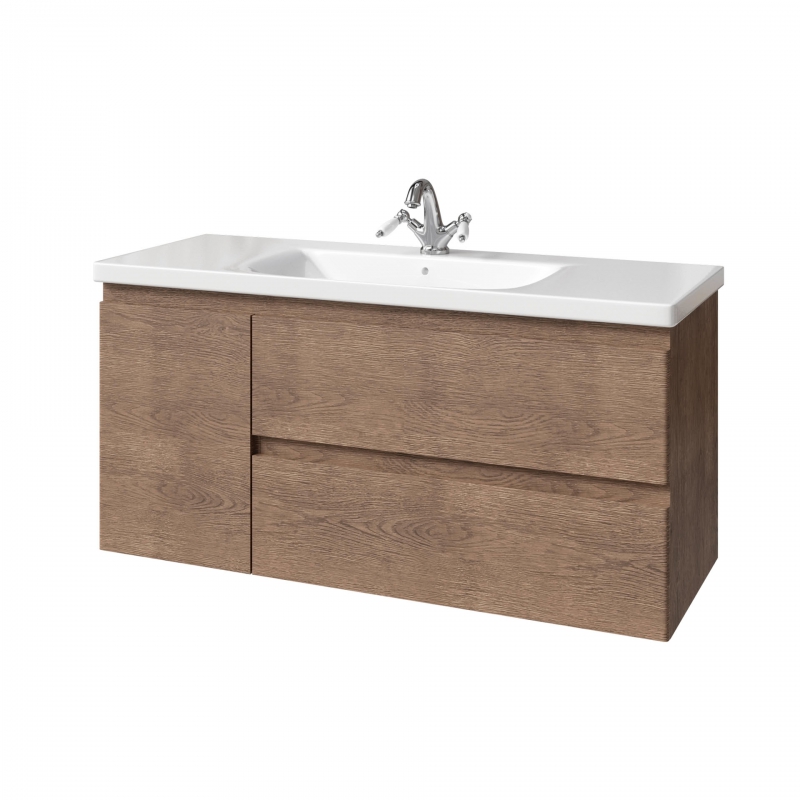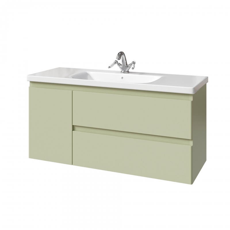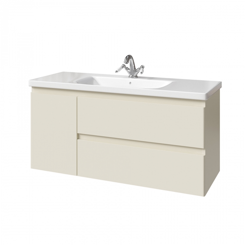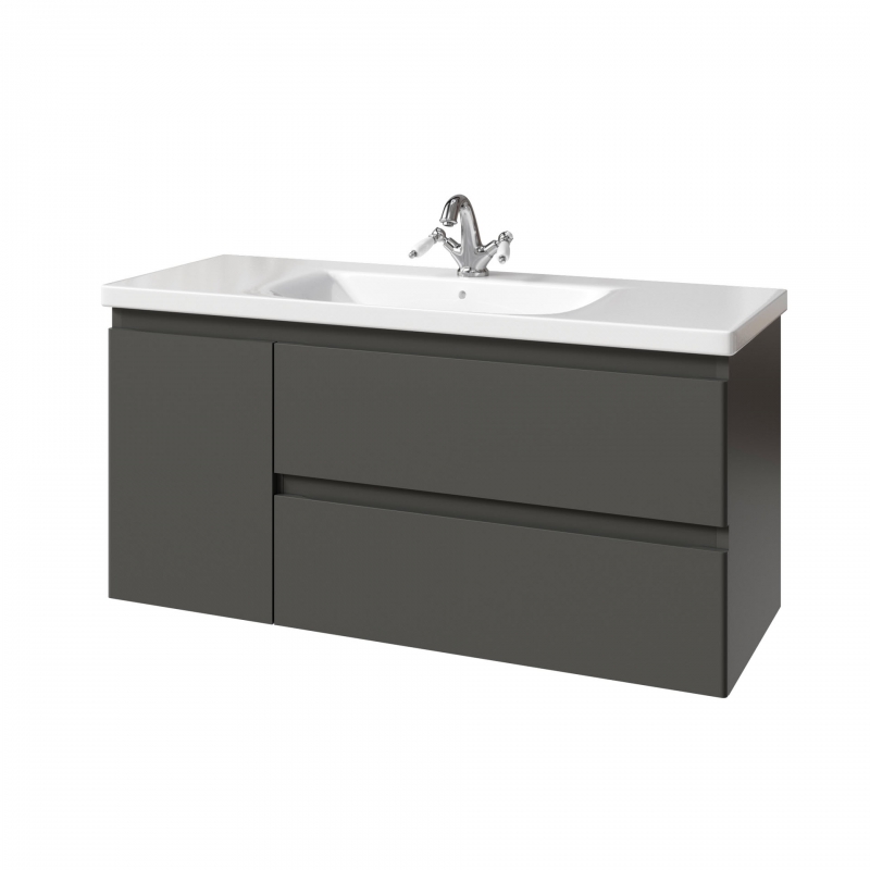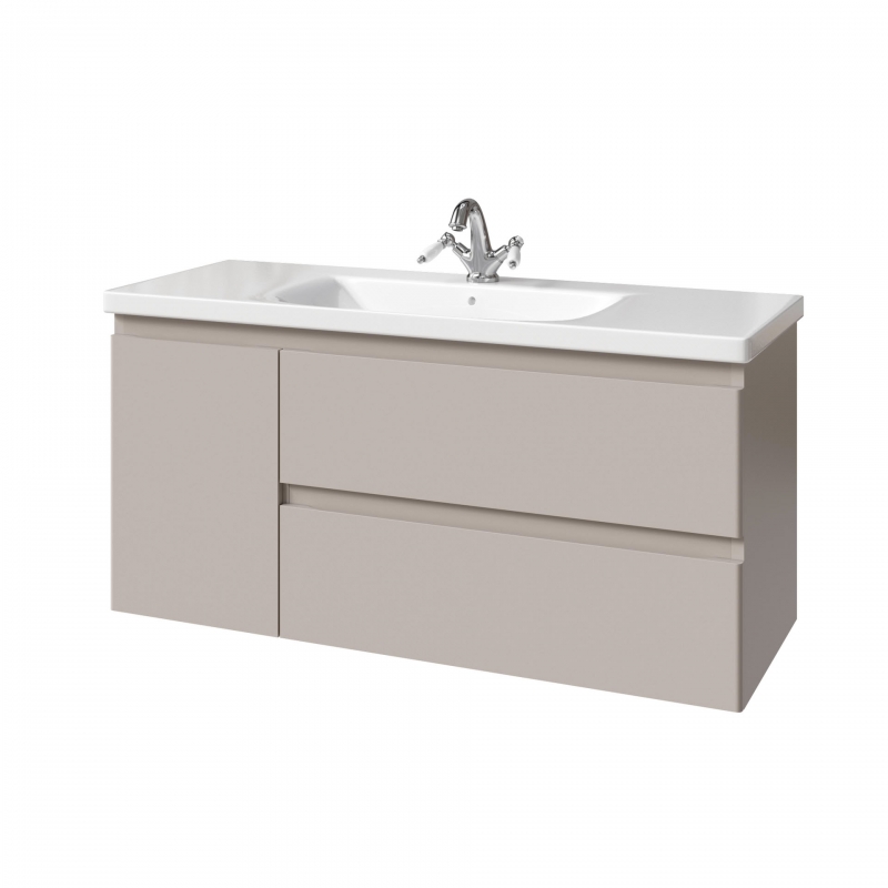 Тумба подвесная для раковины 120см с 2 ящиками и 1 дверью (слева). Ручки интегрированные в фасадах. Выпускается в Матовых и Текстурированных отделках из реестра MODERN (ограничение по глянцевым отделкам).