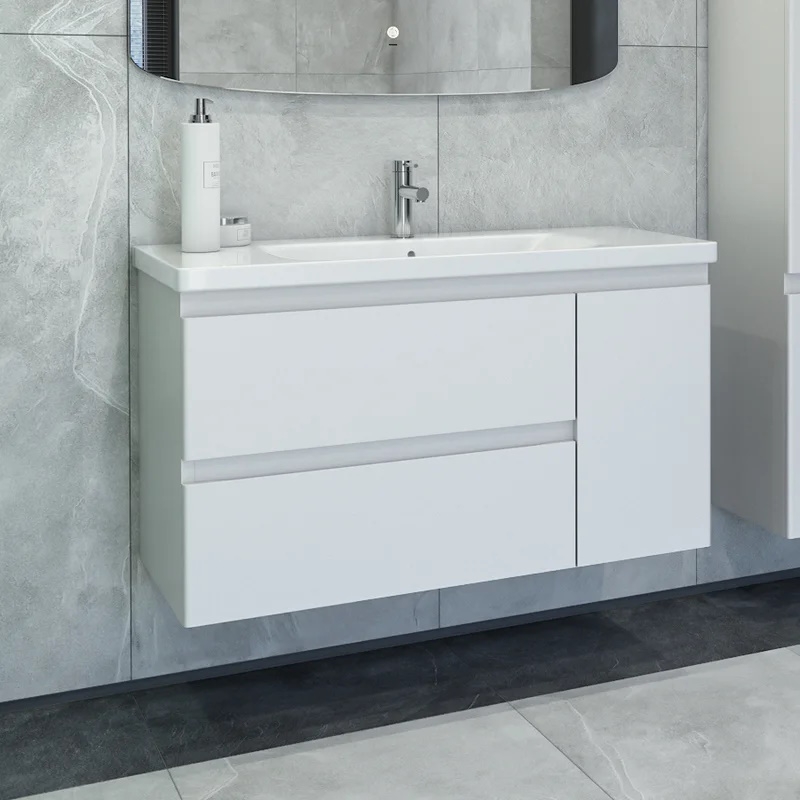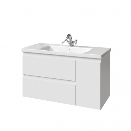 Тумба подвесная для раковины 100см с 2 ящиками и 1 дверью (справа). Ручки интегрированные в фасадах.