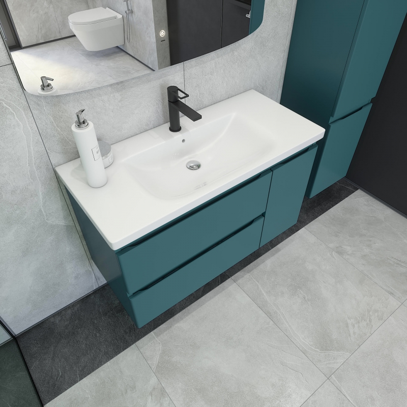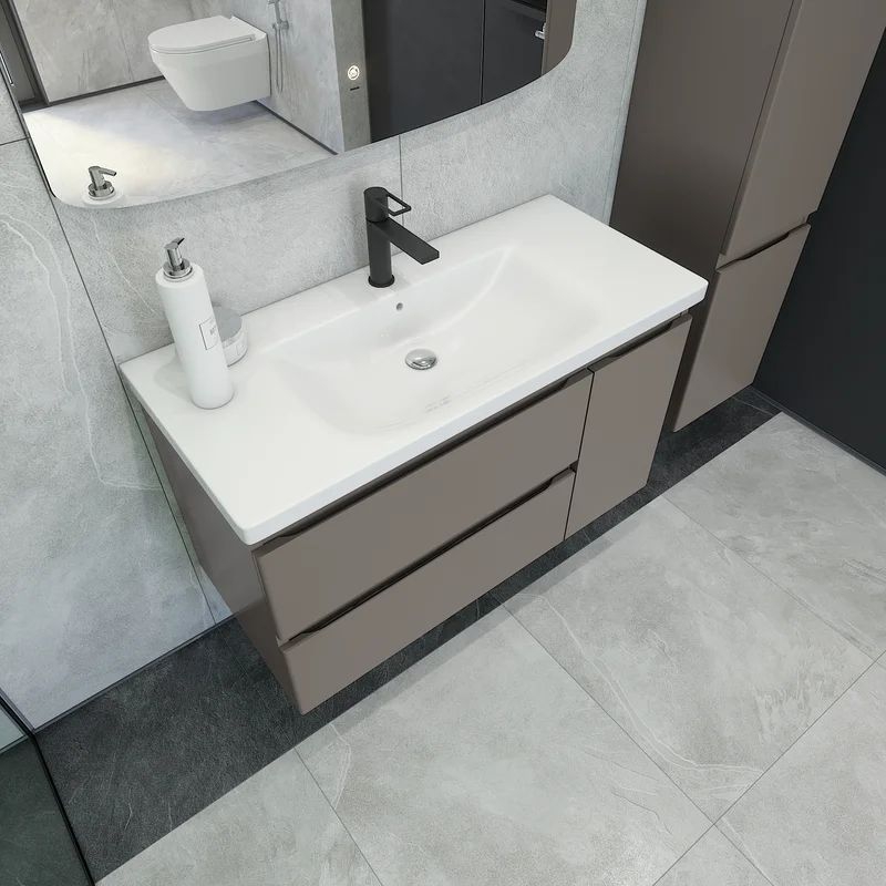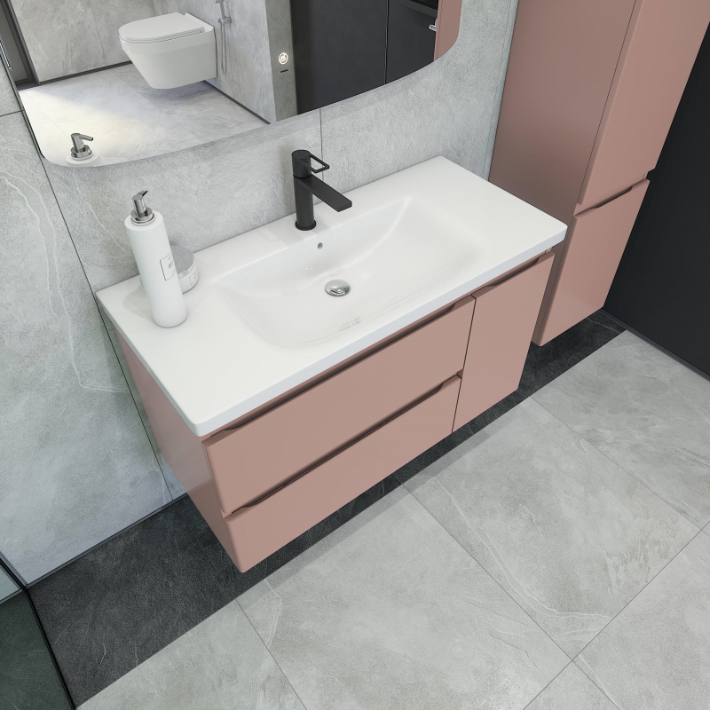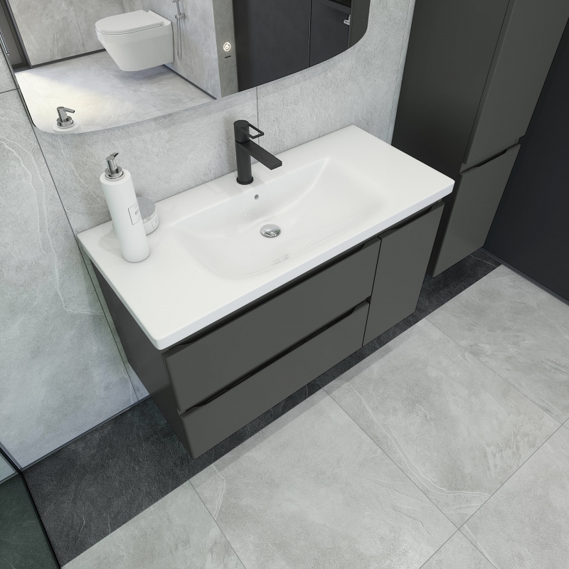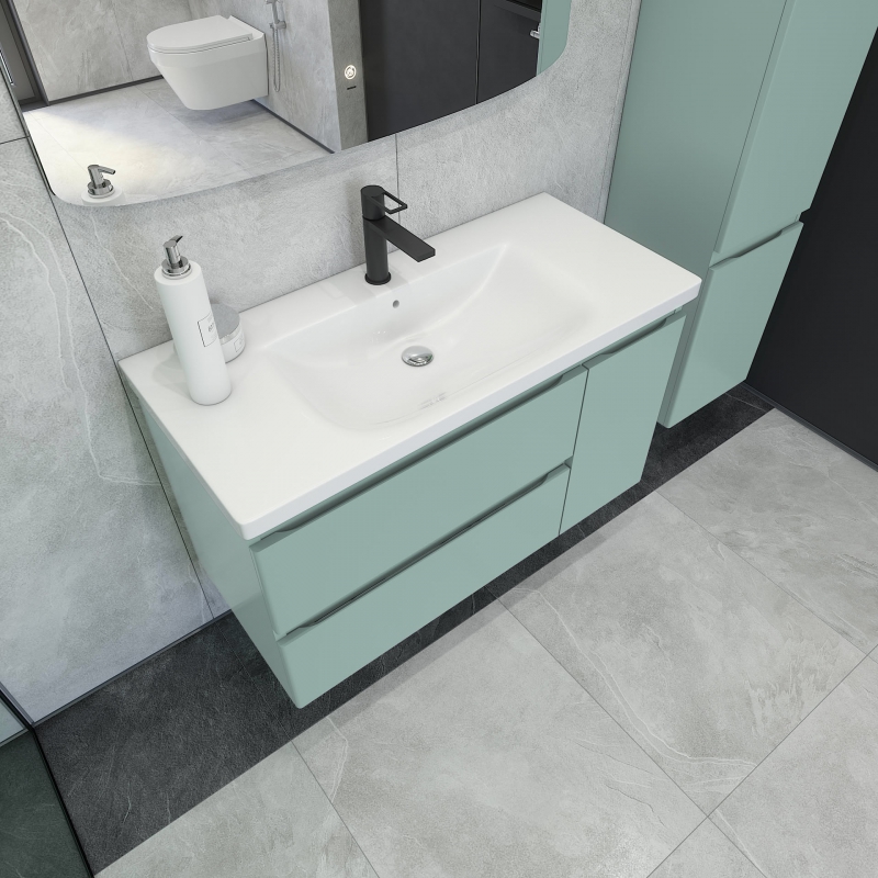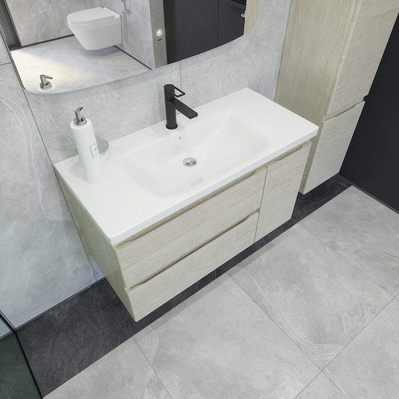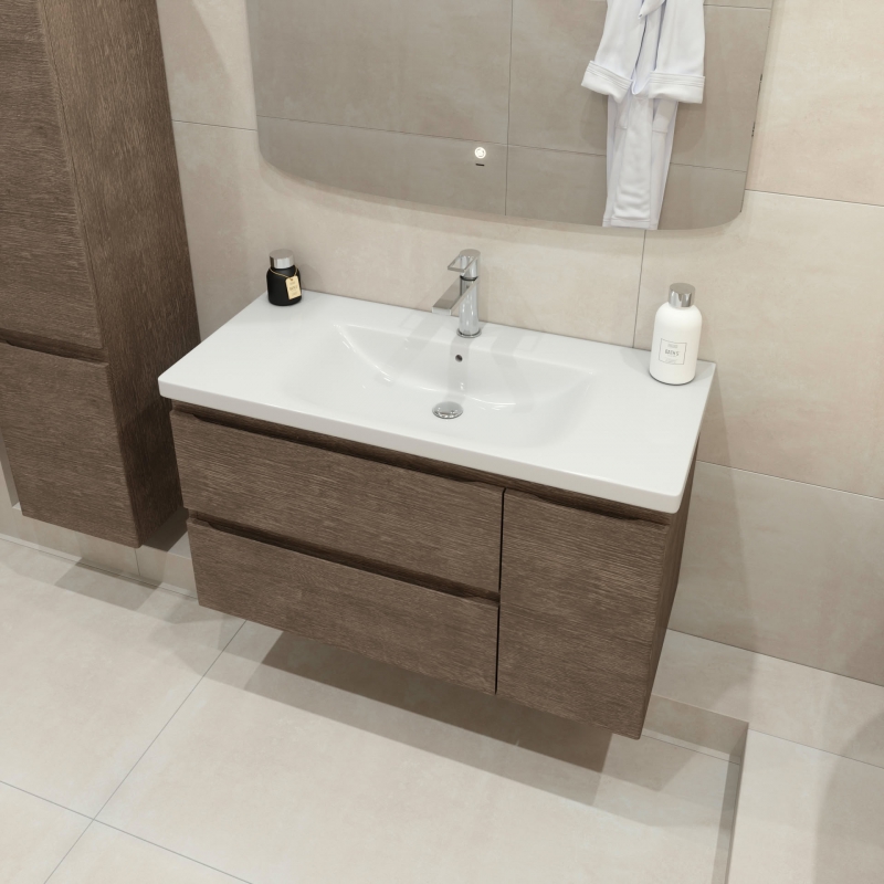 Тумба подвесная для раковины 100см с 2 ящиками и 1 дверью (справа). Ручки интегрированные в фасадах.