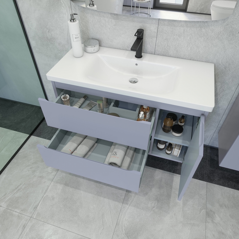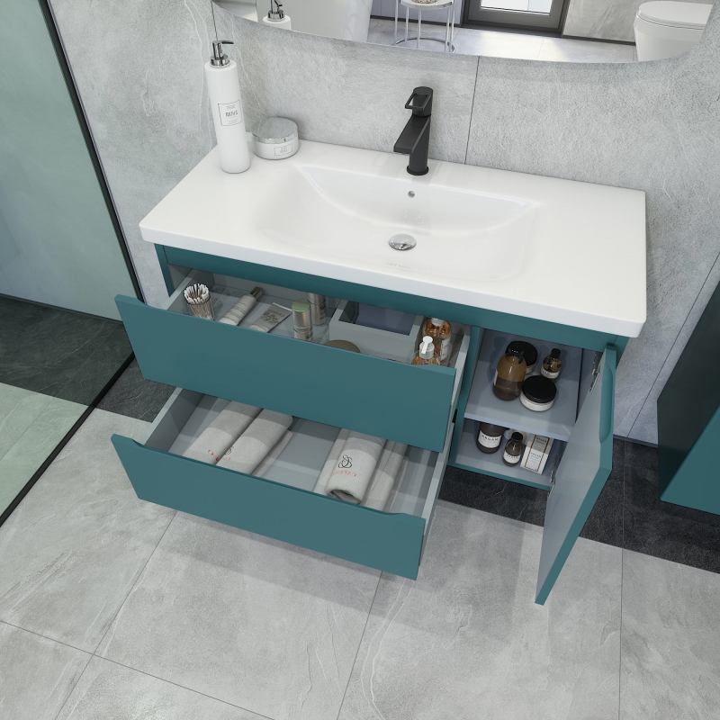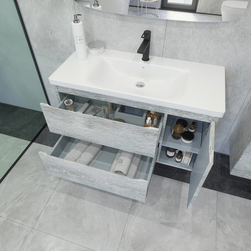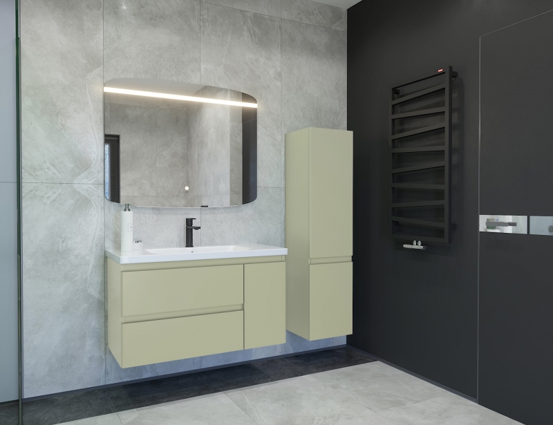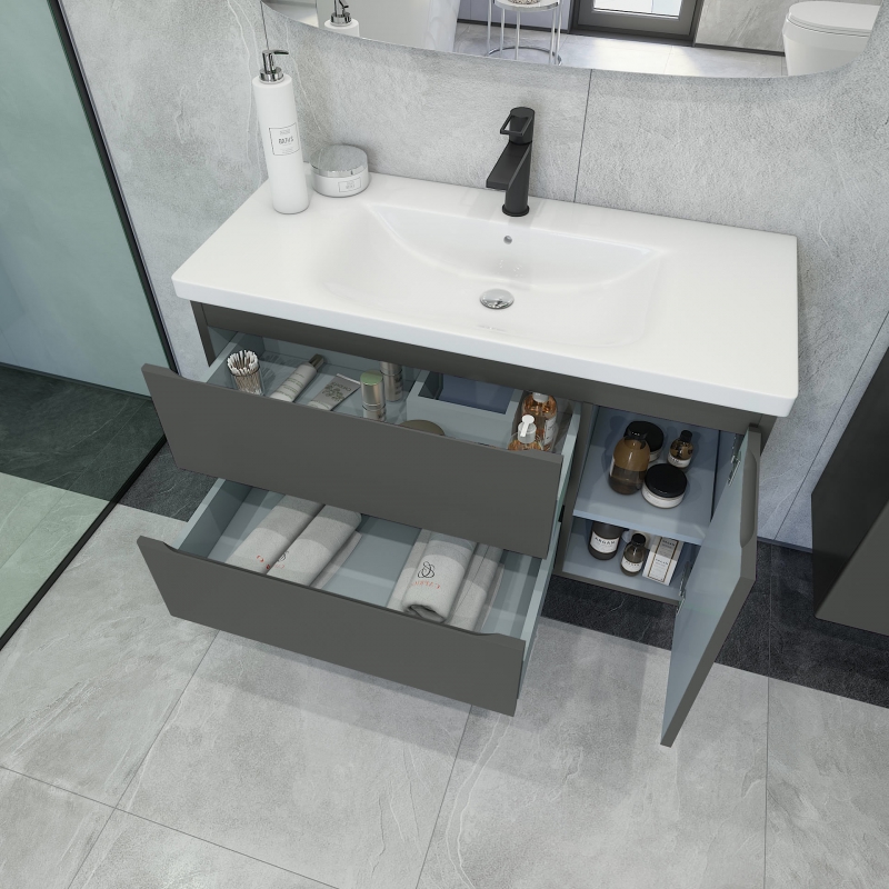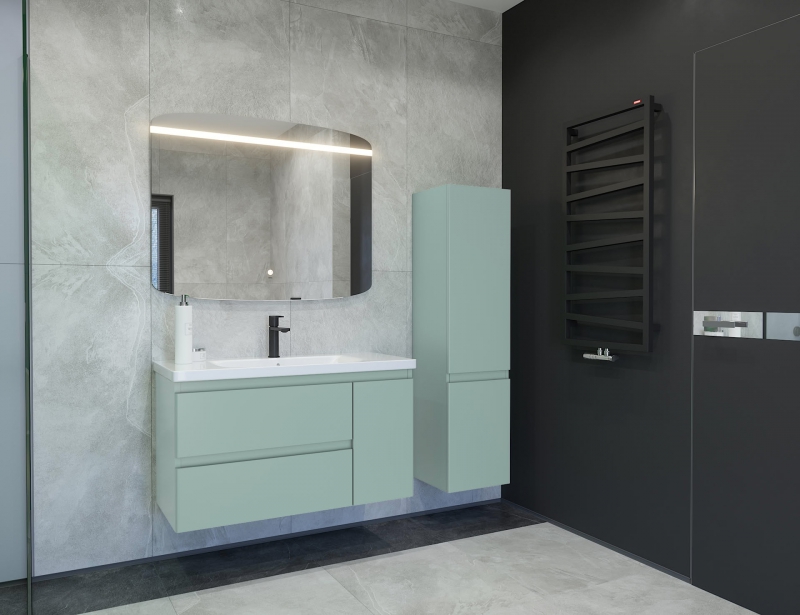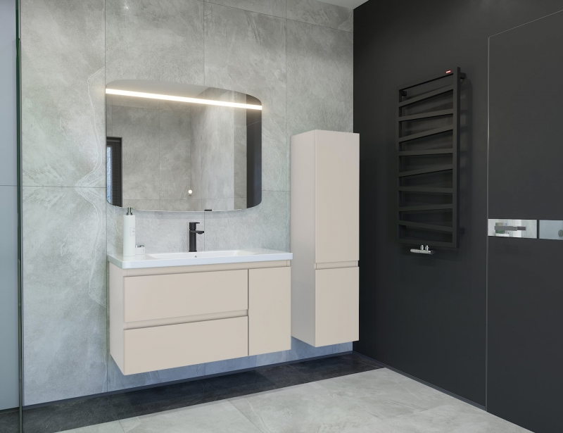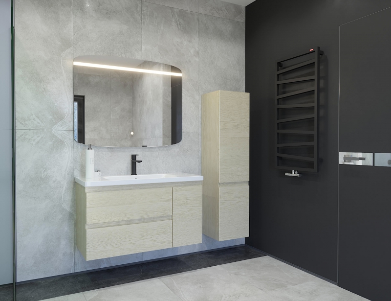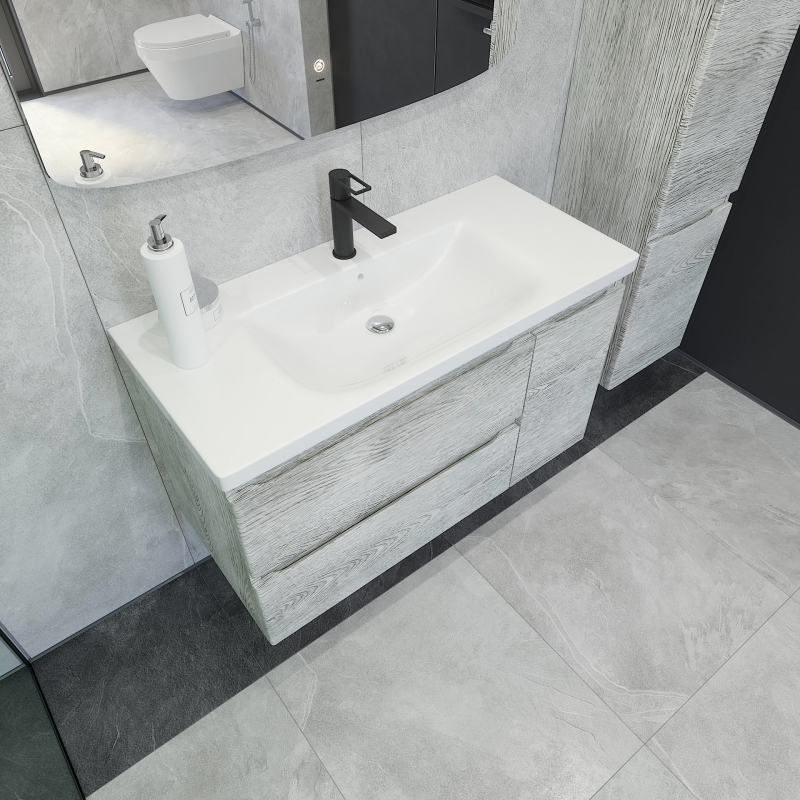 Тумба подвесная для раковины 100см с 2 ящиками и 1 дверью (справа). Ручки интегрированные в фасадах.