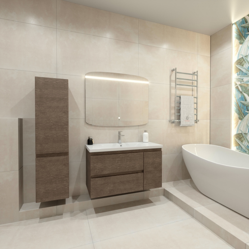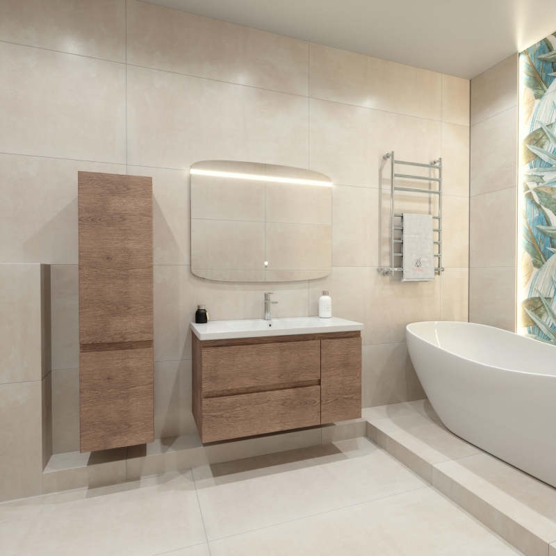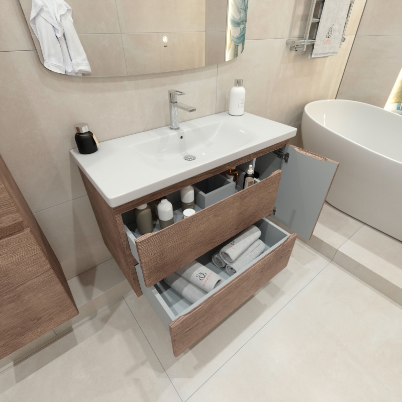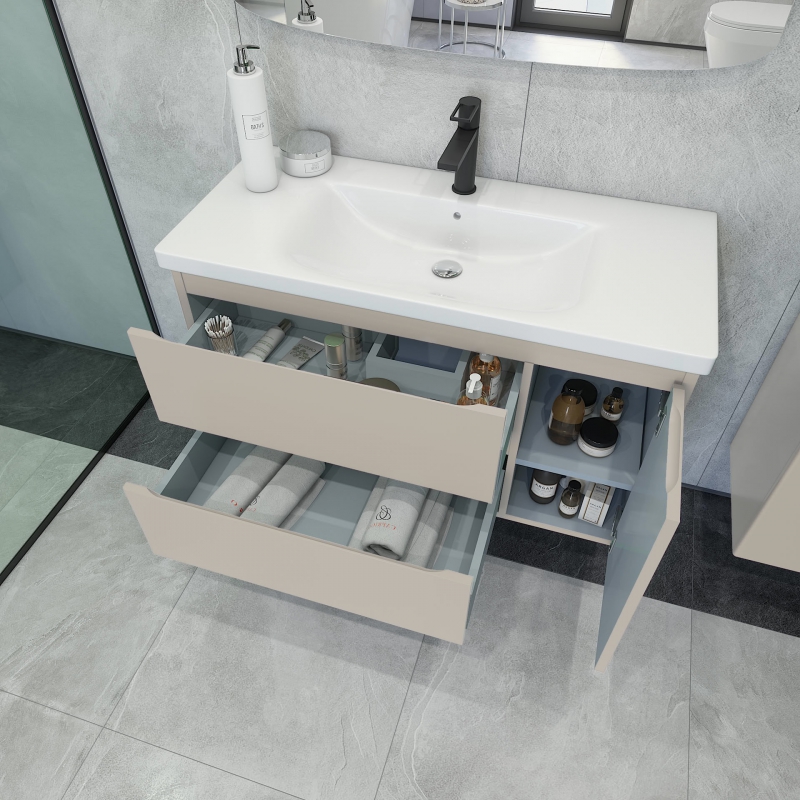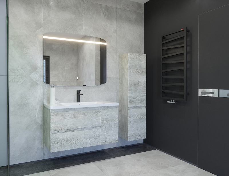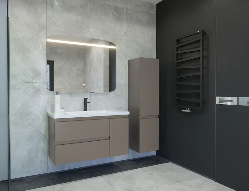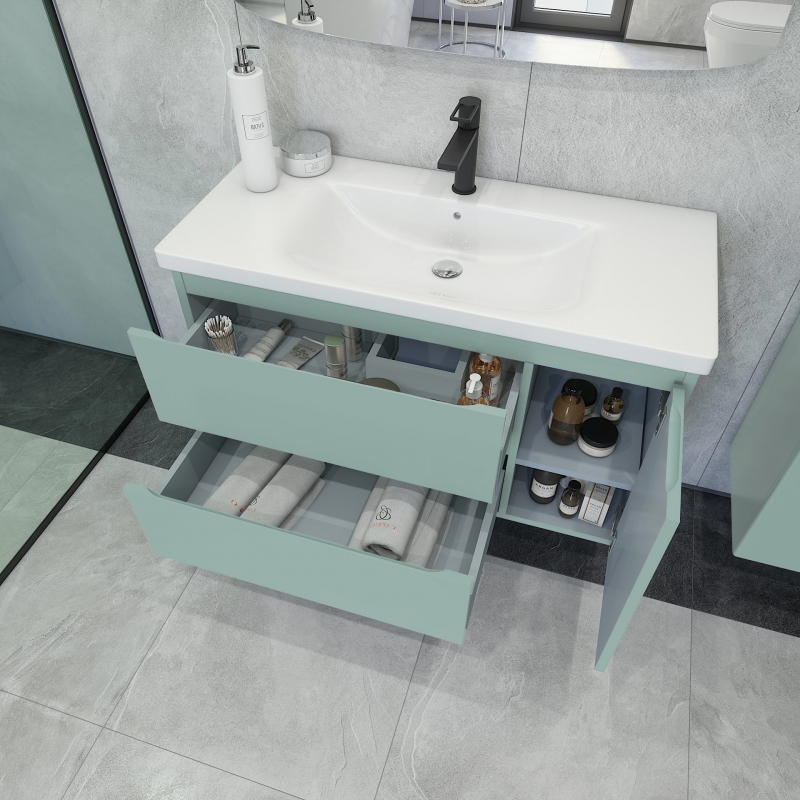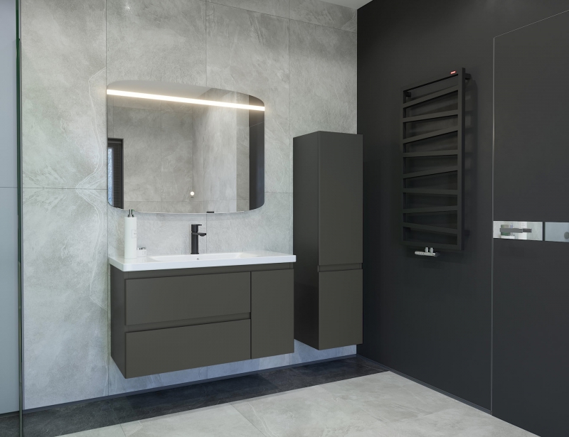 Тумба подвесная для раковины 100см с 2 ящиками и 1 дверью (справа). Ручки интегрированные в фасадах.