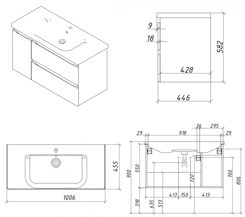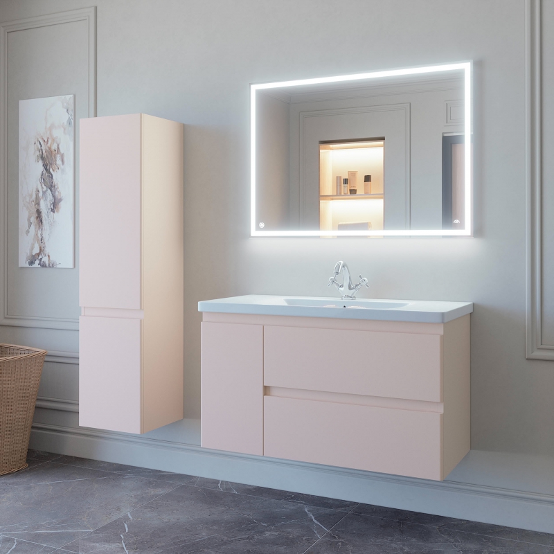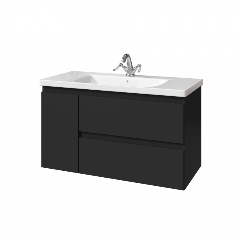 Тумба подвесная для раковины 100см с 2 ящиками и 1 дверью (слева). Ручки интегрированные в фасадах. Выпускается в Эмалях из реестра CLASSIC
