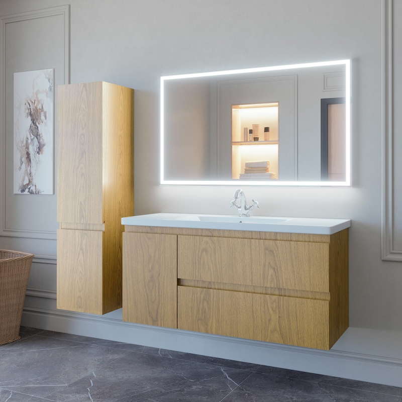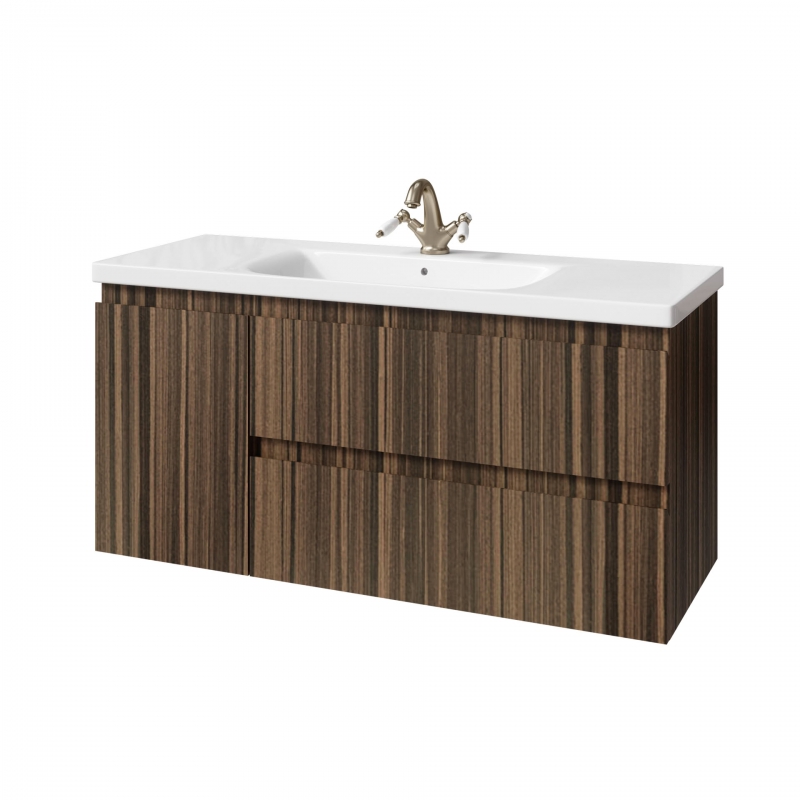 Тумба подвесная для раковины 120см с 2 ящ.и и 1 дверью. Ручки интегрированные. Выпускается в отделках Натуральным Шпоном.