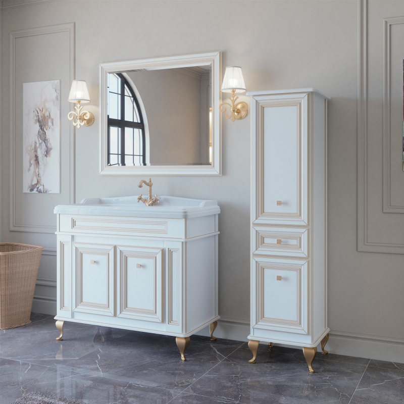 шкаф-пенал FRESCO правый производится в отделках Категории ЭМАЛИ реестра отделок CLASSIC в комплекте: один выдвижной ящик и две стеклянные полки 4 м