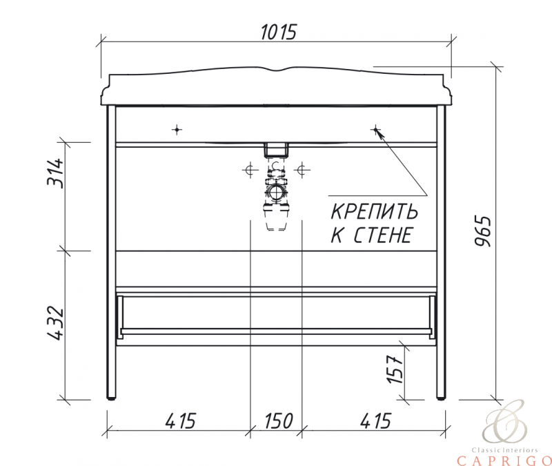 GENOVA тумба 100 (2 двери, 1 ящик) для ванной комнаты производится под заказ в любых отделках из Реестра отделок "CONCEPT" фаянсовая раковина приобретается отдельно