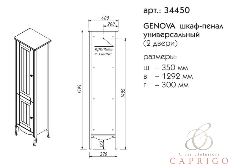 GENOVA шкаф-пенал универсальный (2 двери) производится под заказ в любых отделках из Реестра отделок "CONCEPT". Три полки. Двери имеют возможность открывания на другую сторону после перевешивания петель