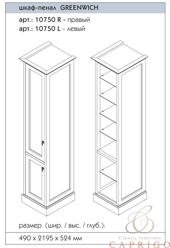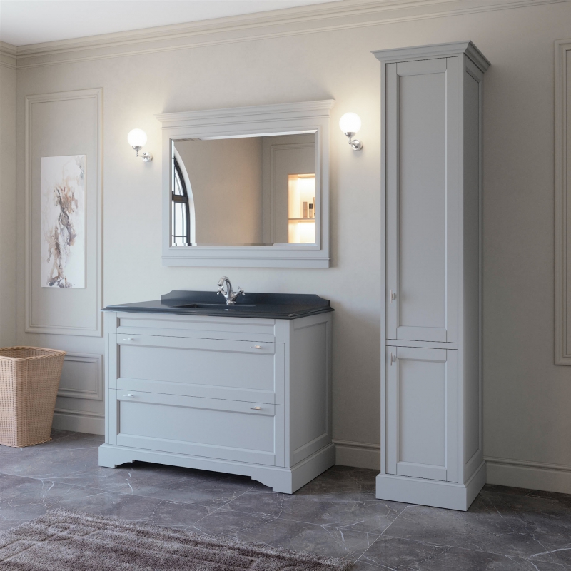 Шкаф-пенал в ванную комнату Greenwich производится только в отделках цветными эмалями без патинирования согласно реестру отделок.В комплекте пять стеклянных полок 4мм. Установка петлей слева.