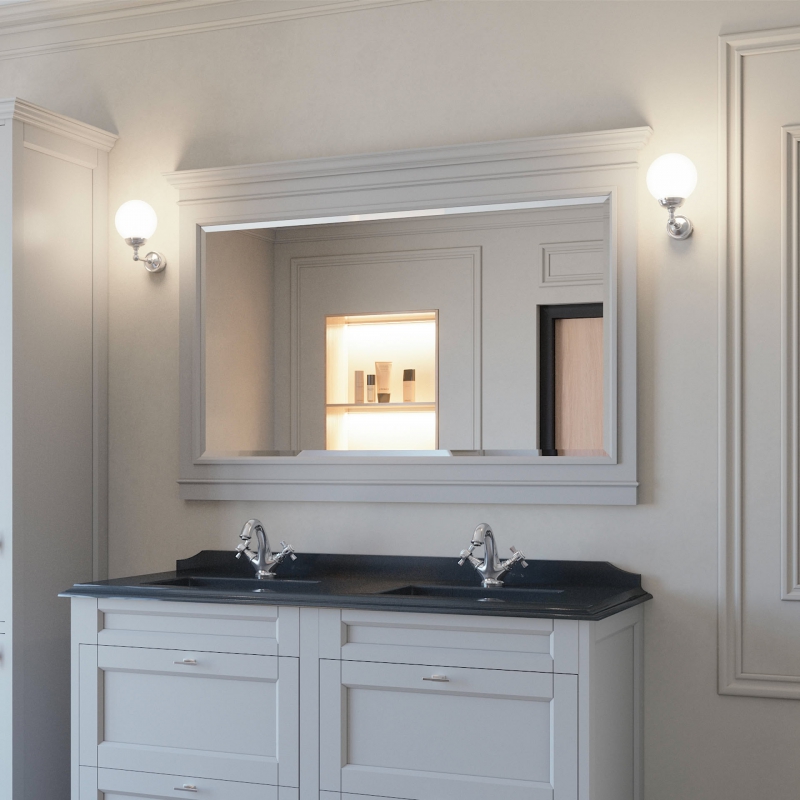 Зеркало в ванную комнату Greenwich 140 см производится только в отделках цветными эмалями без патинирования согласно реестру отделок.Зеркальный фарцет 25 мм.