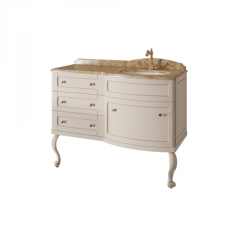 Тумба для столешницы 120см, 4 ящика. Выпуск в отделках ЭМАЛЯМИ из реестра CLASSIC. Вар.раковин(фаянс)арт. 0222WK;1447-538, отдельно заказывается столешница