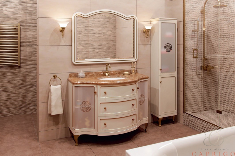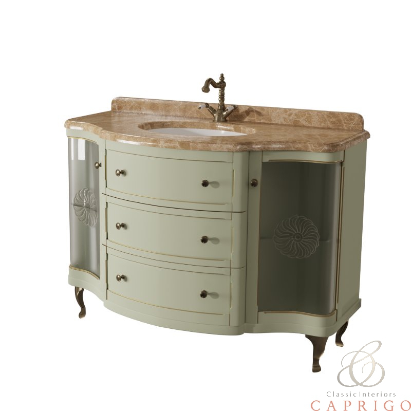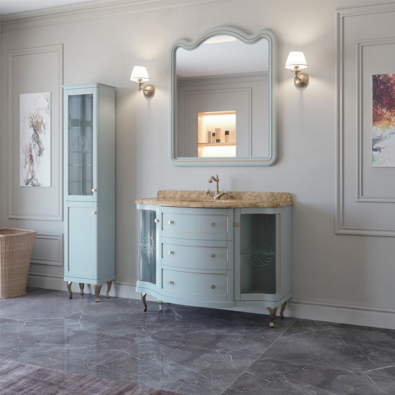 Тумба Imperio 120 для ванной комнаты изготовлена из массива дуба, цена указана на стандартные отделки.