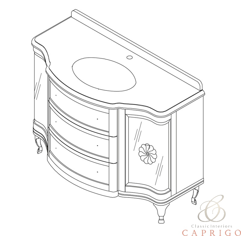 В комплекте два выдвижных ящика и врезная фаянсовая раковина.