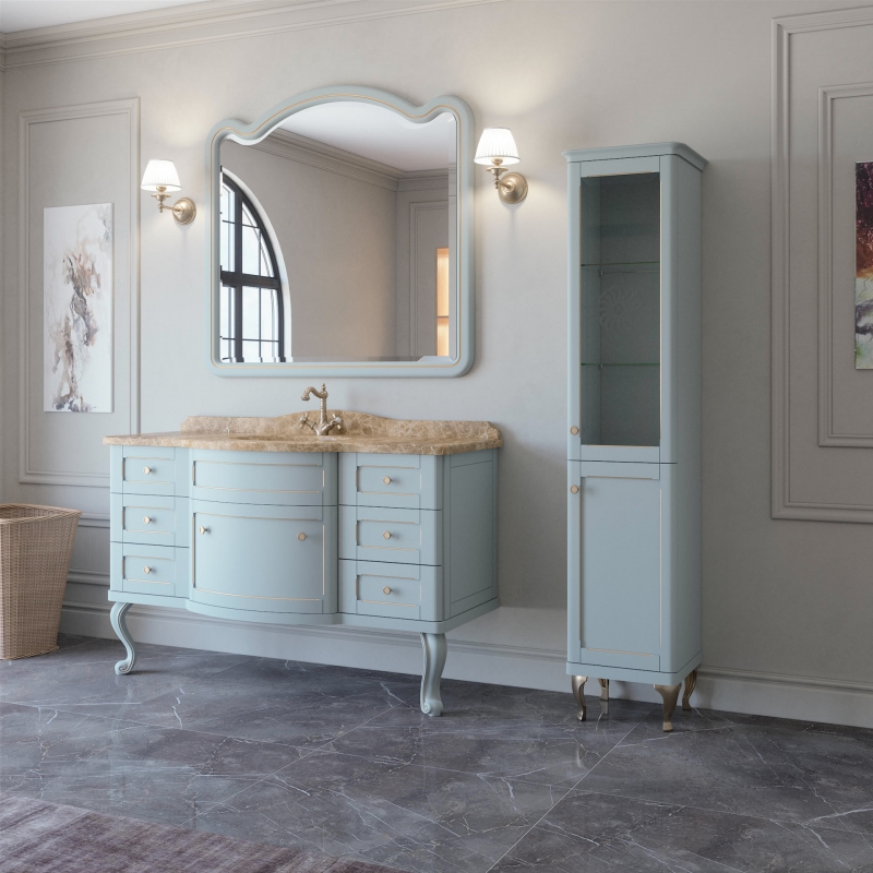 Глубой шкаф-пенал Imperio с петлями справа в ванную изготовлен из массива дуба.Цена на стандартные отделки.Верхний фасад со стеклом.В комплекте: три стеклянные полки 4мм.