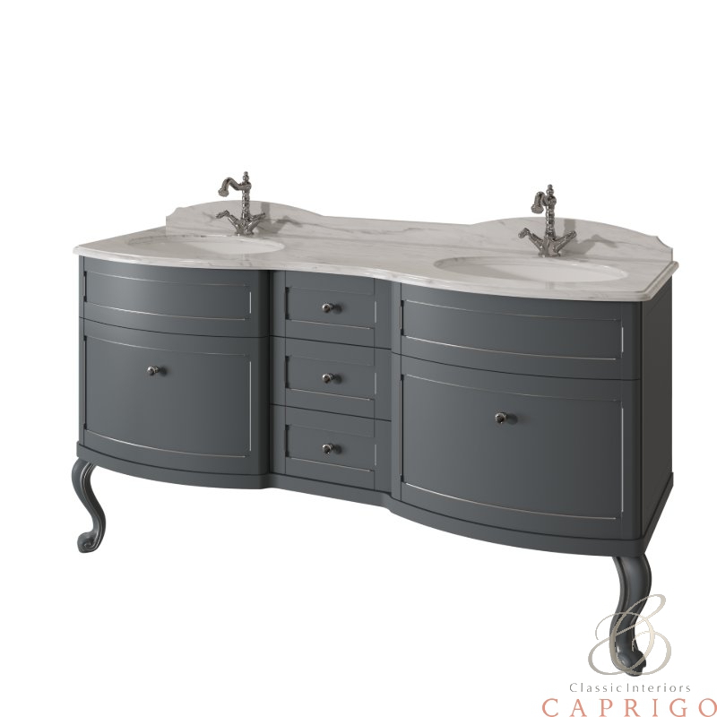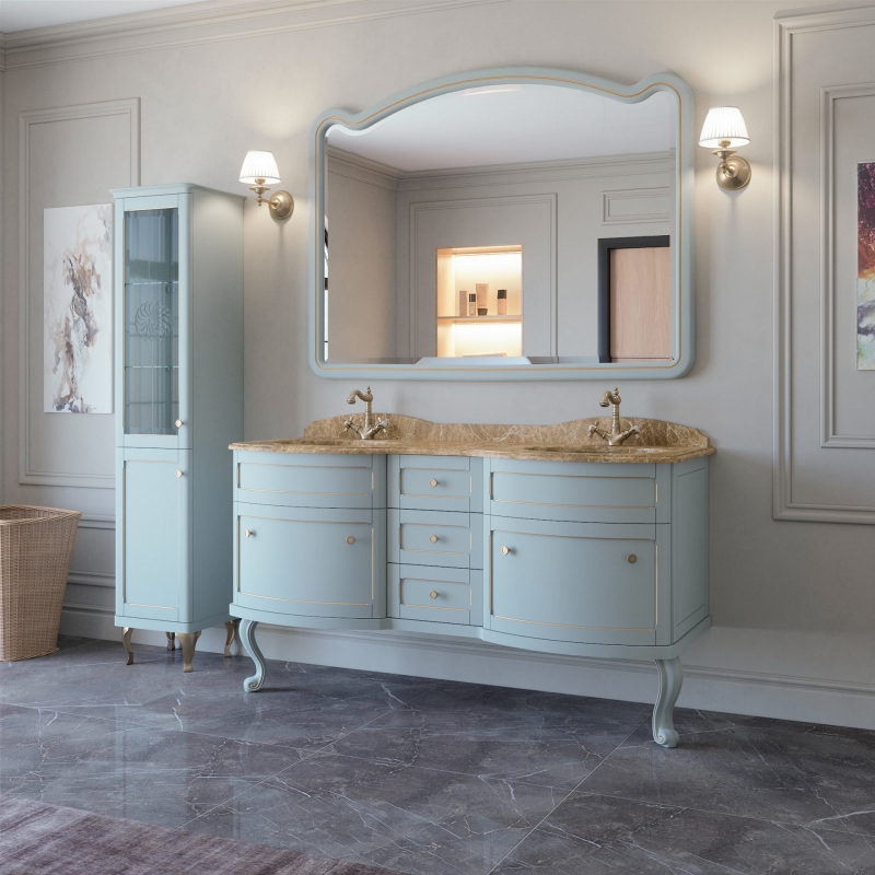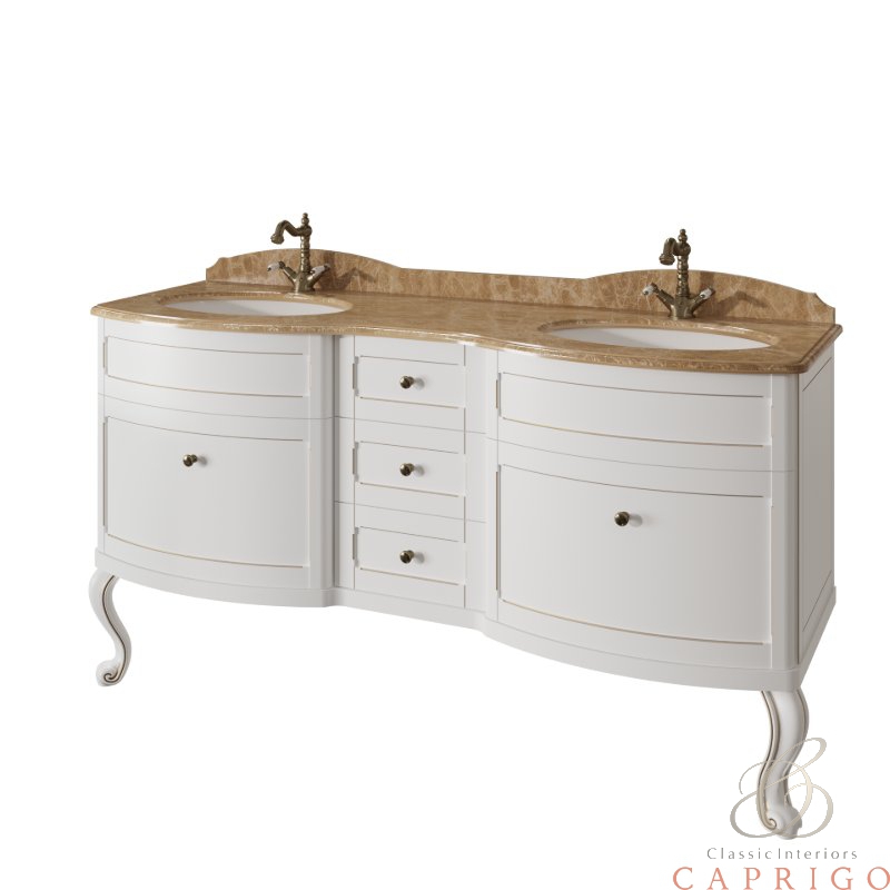 Тумба Imperio 160 для ванной комнаты изготовлена из массива дуба, цена указана на стандартные отделки.В комплекте пять выдвижных ящика и врезная фаянсовая раковина.Толщина столешницы 20 и 30 мм, материалы мрамор, агломерат и кварц в различных цветах.Цену можно уточнить у менеджеров по телефону или почте.