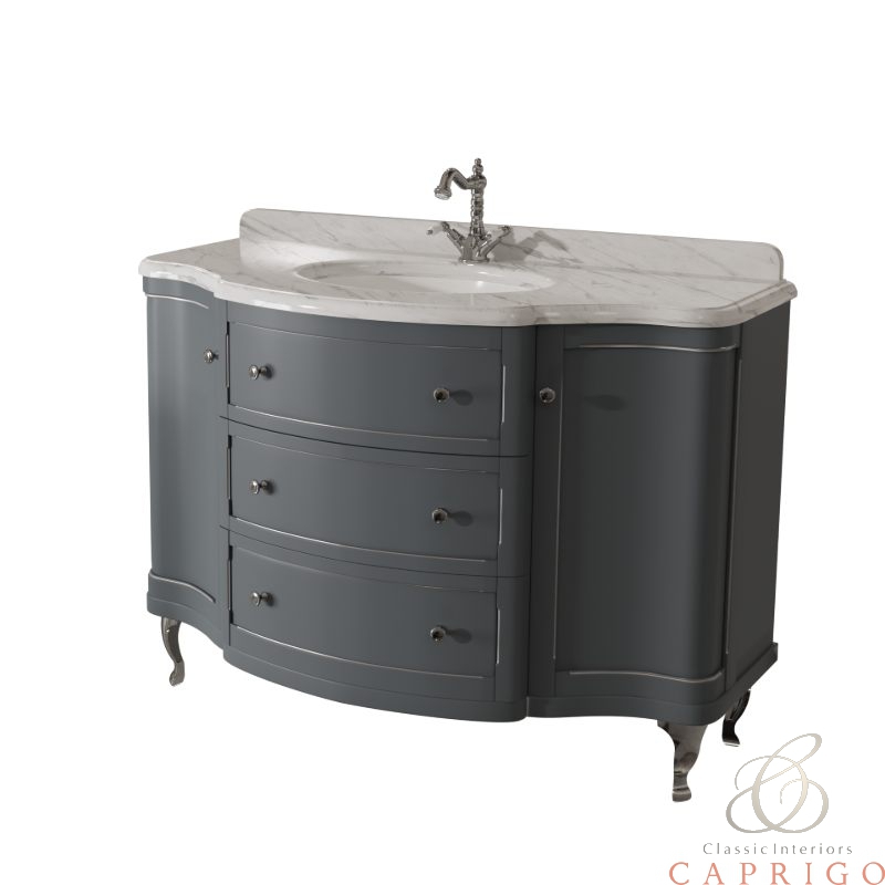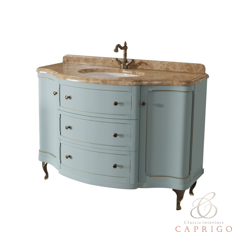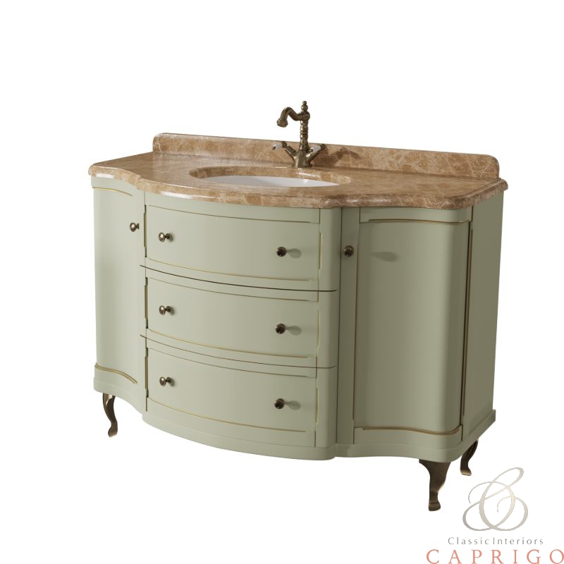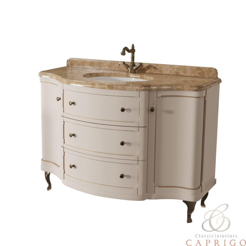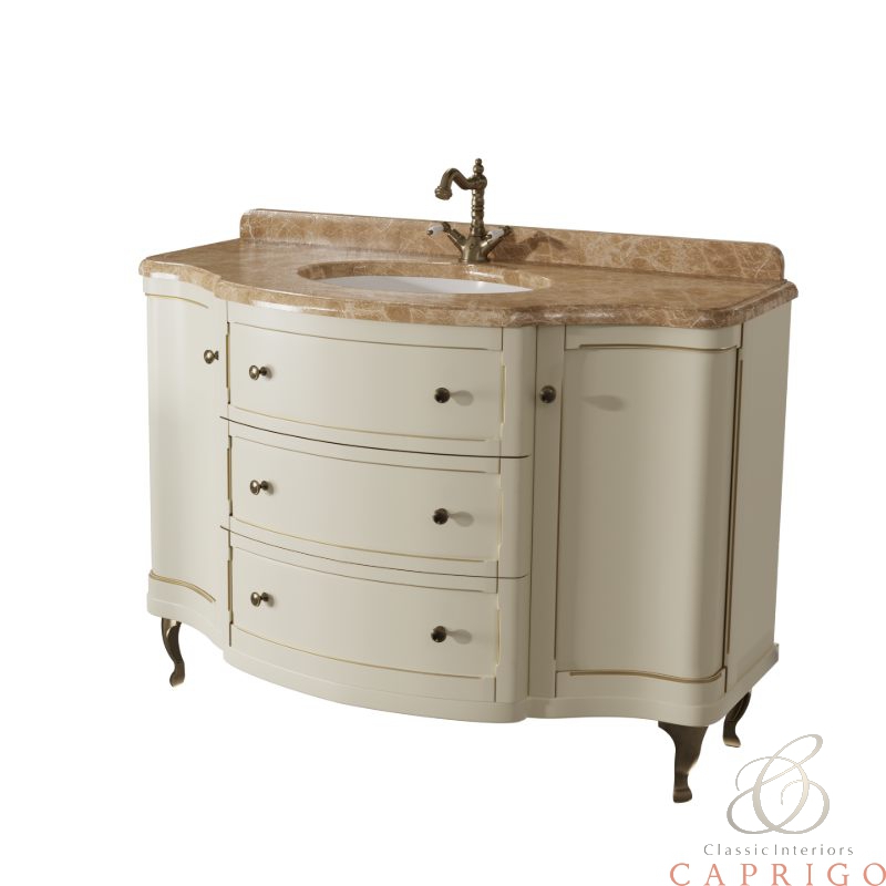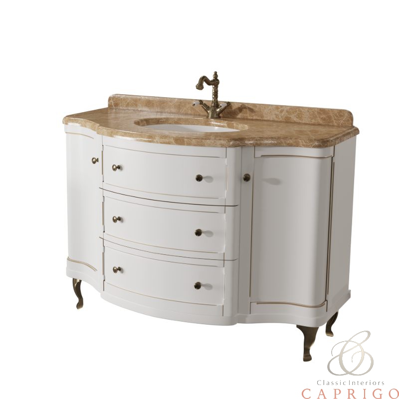 Тумба Imperio 120 филёнки для ванной комнаты изготовлена из массива дуба, цена указана на стандартные отделки.Боковые фасады тумбы в виде филенок.В комплекте два выдвижных ящика и врезная фаянсовая раковина.Возможна отделка золотой/серебрянной поталью.Толщина столешницы 20 и 30 мм, материалы мрамор, агломерат и кварц в различных цветах.Цену можно уточнить у менеджеров по телефону или почте.