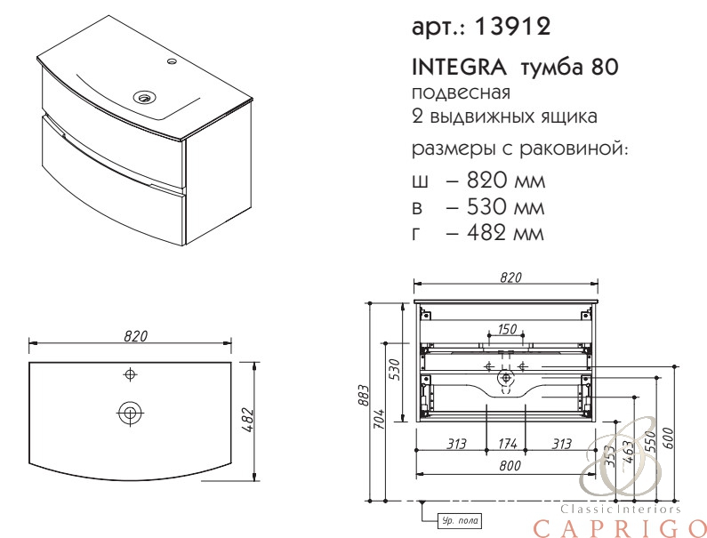 INTEGRA тумба 80 выпускается в отделках: категория ЭМАЛИ – SPECIAL ENAMEL category реестра отделок "CLASSIC" раковина (стеклокерамика)