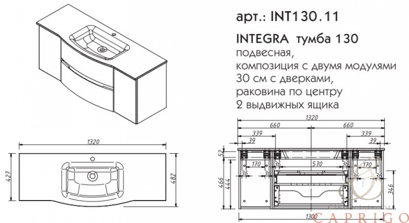 Модульная программа коллекции INTEGRA составлена из сочетания тумбы 70 см