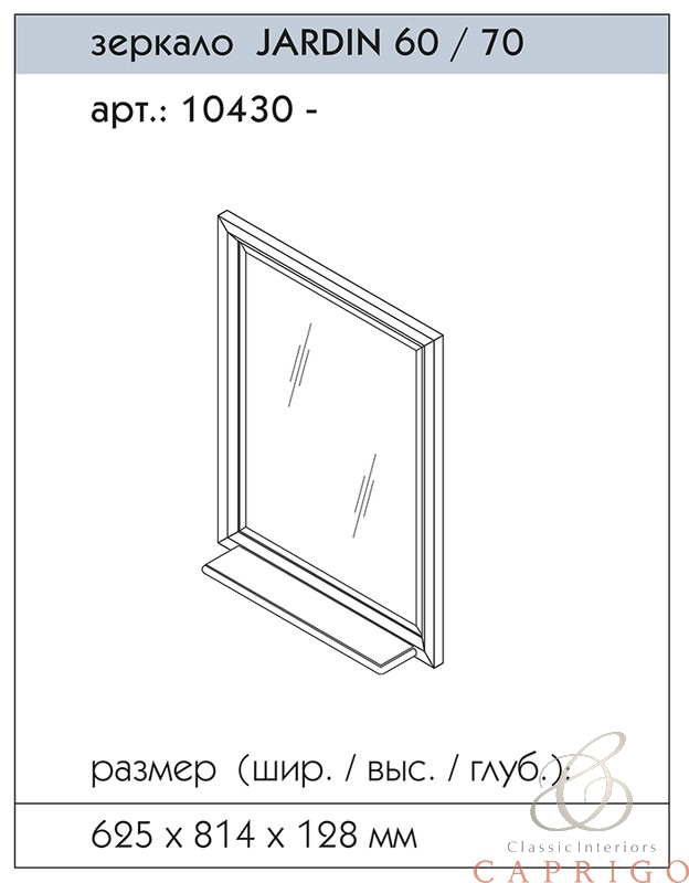 Зеркало Jardin 60/70 с полкой выпускается в отделках из Реестра отделок мебели CLASSIC. зеркальный фацет 25 мм