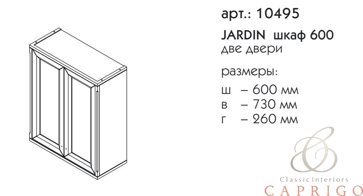шкаф навесной JARDIN 600 выпускается в отделках из Реестра отделок мебели CLASSIC. две стеклянные полки 5 мм