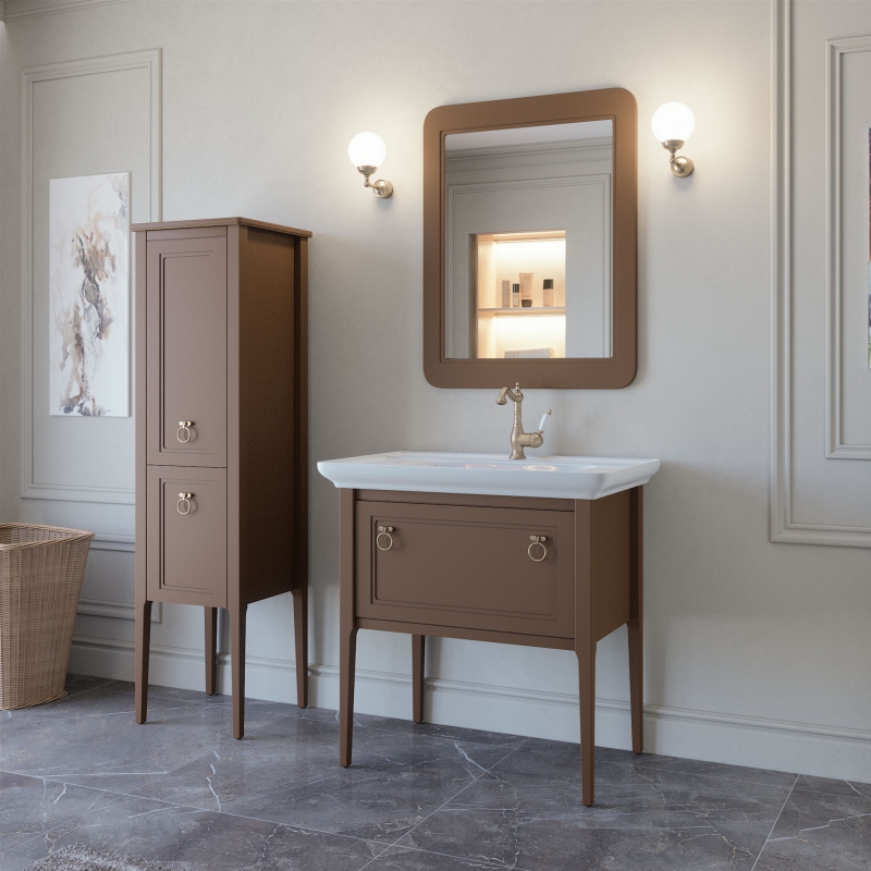 JERSEY тумба 85 производится под заказ в любых отделках "SOFTTOUCH" из реестра отделок CONCEPT. Один выдвижной ящик. Раковина (керамика) продается отдельно