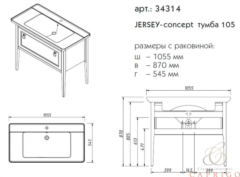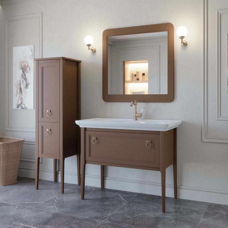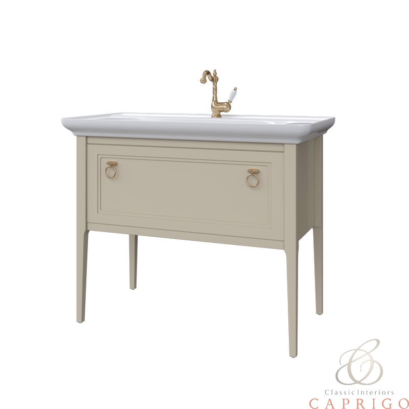 JERSEY тумба 105 в ванную комнату производится под заказ в любых отделках "SOFTTOUCH" из реестра отделок CONCEPT. Один выдвижной ящик. Раковина (керамика) продается отдельно