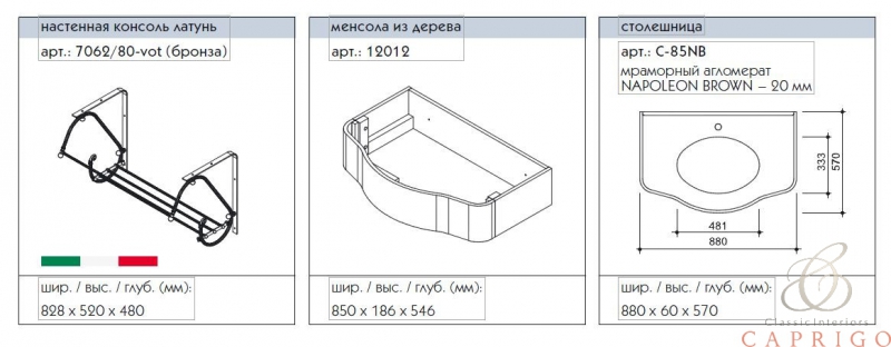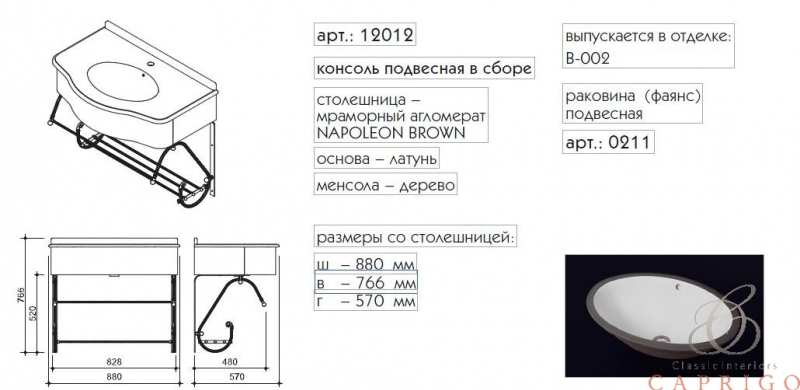 Подвесная консоль Spazio в ванную комнату выпускается только в отделке B002.В комплекте консоли идёт менсола и фаянсовая раковина.
