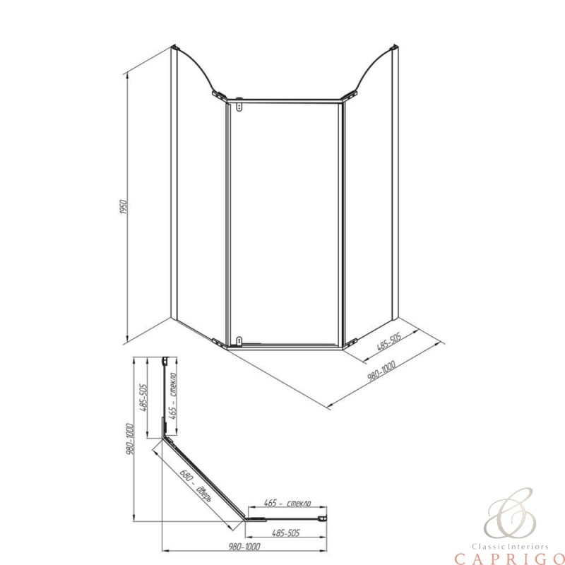 DIADEMA PENTA Душевая кабина угловая 100x100xH203см, дверь распашная 74 см.(SX-DX) стекло прозрачное/декоративное от производителя Migliore