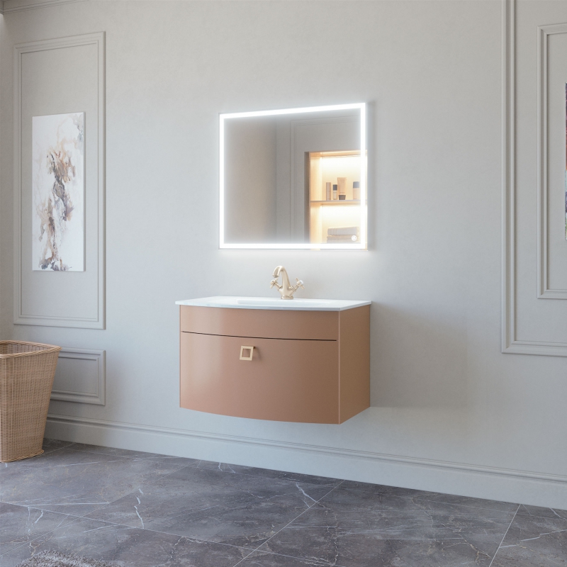Подвесная тумба Legato 80 выпускается в отделках MODERN в виде декоративной пленки.В тумбе один выдвижной ящик и раковина из эмалированного стекла.Тумба может быть укомплектована стеклянной раковиной с золотой/серебрянной поталью.