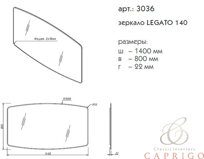 зеркало LEGATO 140 на подложке, без подсветки, зеркальный фацет – 10 мм