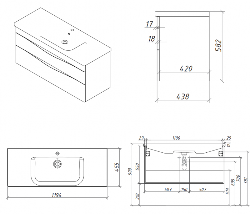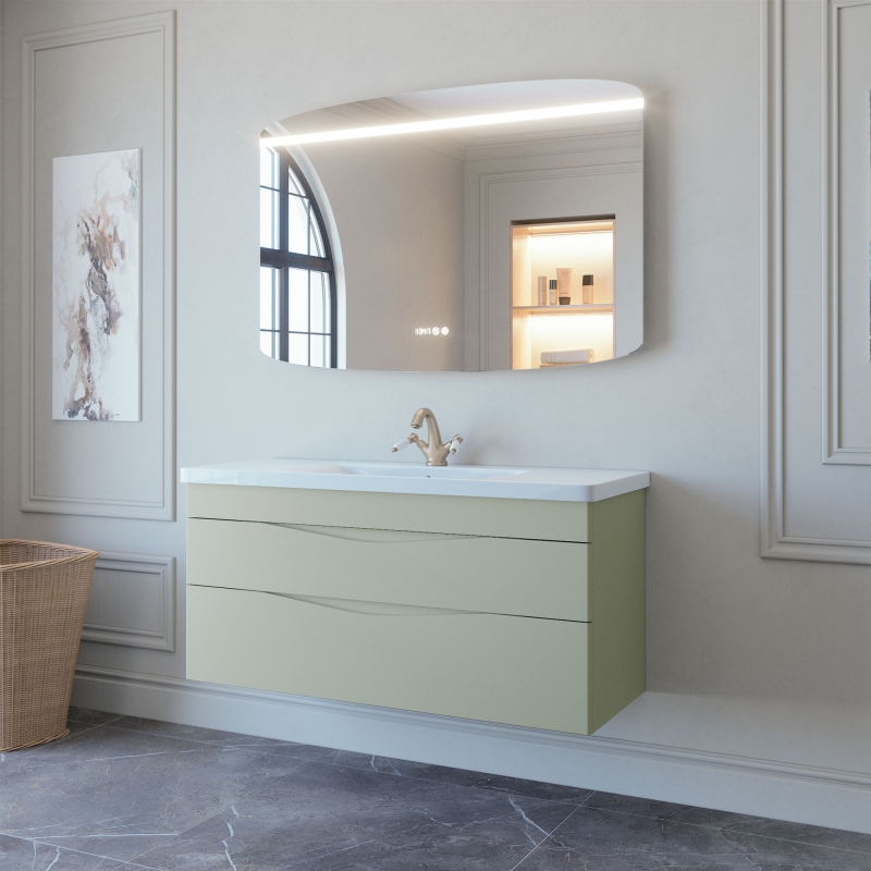Тумба подвесная для раковины 120см с 2 ящиками. Ручки интегрированные в фасадах. Выпускается в Эмалях из реестра CLASSIC