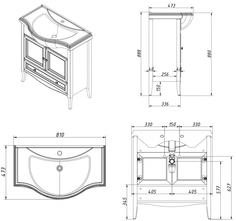 Тумба для раковины 80см с 2 дверьми и 1 ящиком. Выпуск только в отделках 079 VENGE и 038 ЕВРОПЕЙСКИЙ ОРЕХ из реестра CLASSIC.