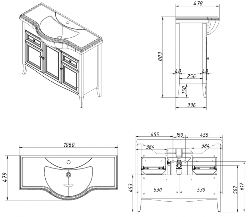 Тумба для раковины 105см с 3 дверьми и 2 ящиками. Выпуск только в отделках 079 VENGE и 038 ЕВРОПЕЙСКИЙ ОРЕХ из реестра CLASSIC.