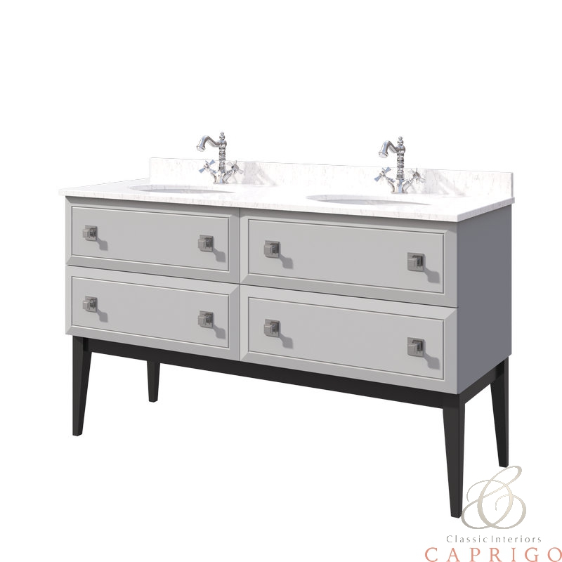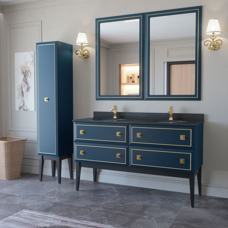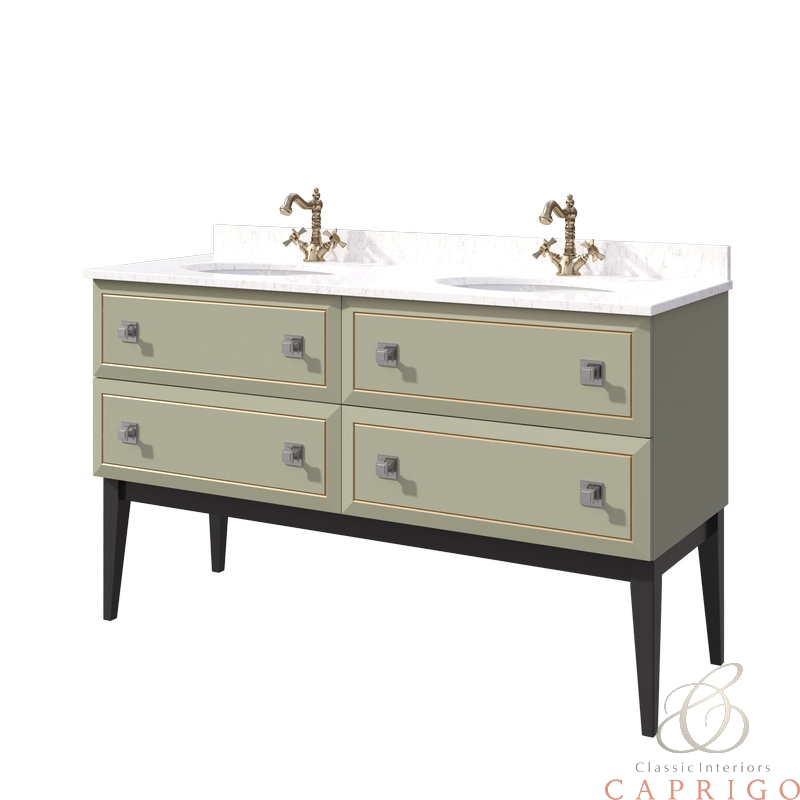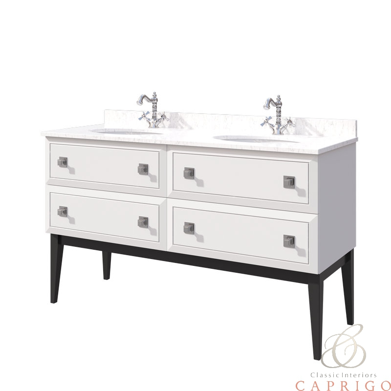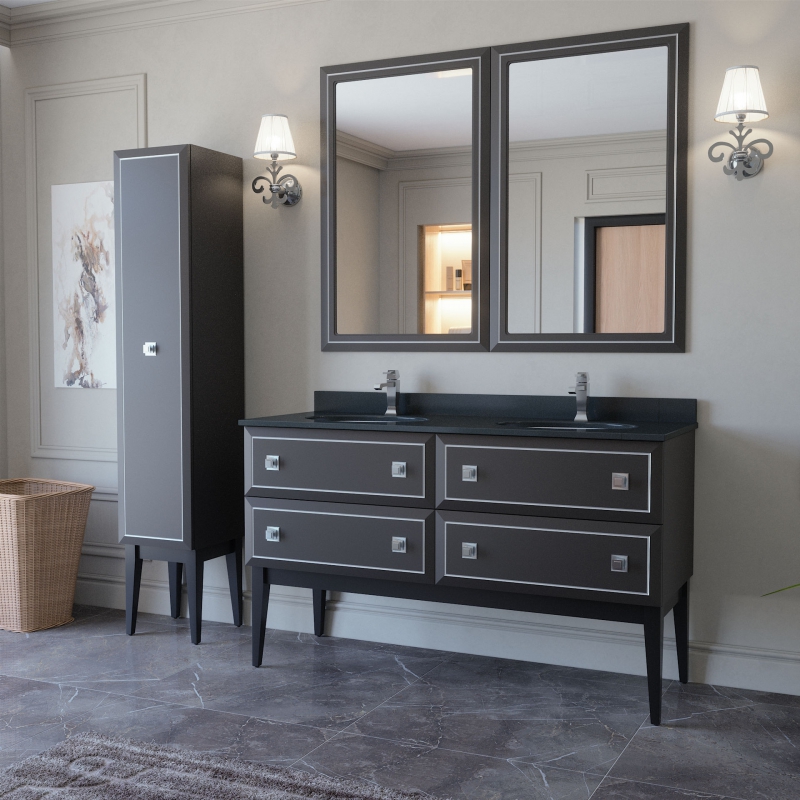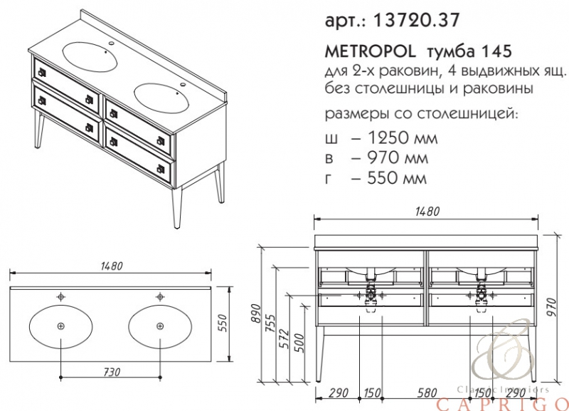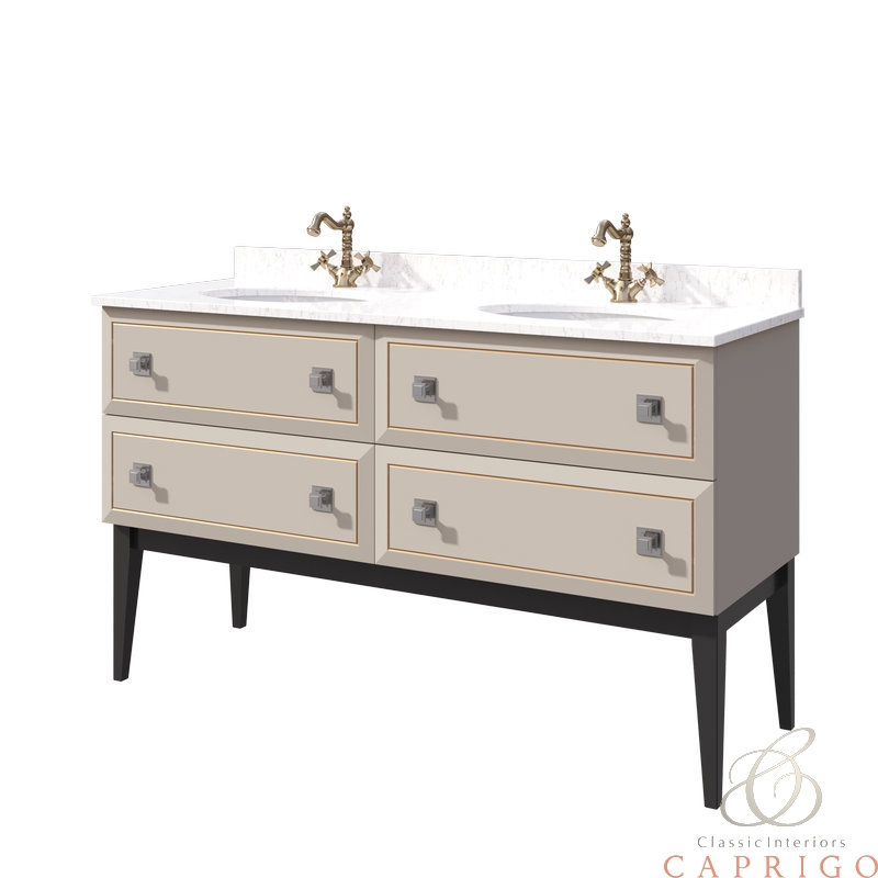 METROPOL тумба 148 выпускается в отделках: категория ЭМАЛИ –SPECIAL ENAMEL category реестра отделок "CLASSIC" варианты накладных раковин (фаянс) Sanita Luxe LINE или AMPIR. Тип столешниц на выбор: Искусственный камень CAPRIGO-White или Кварцевый агломерат SILESTONE или Мраморный агломерат SantaMargherita или Натуральный мрамор