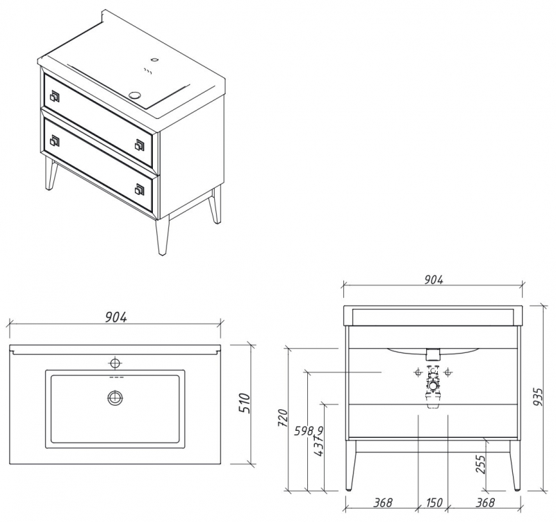 Тумба 90см для рак. моноблок(ножка 37см) с 2 ящиками. Выпуск в отделках ЭМАЛЯМИ из реестра CLASSIC.
