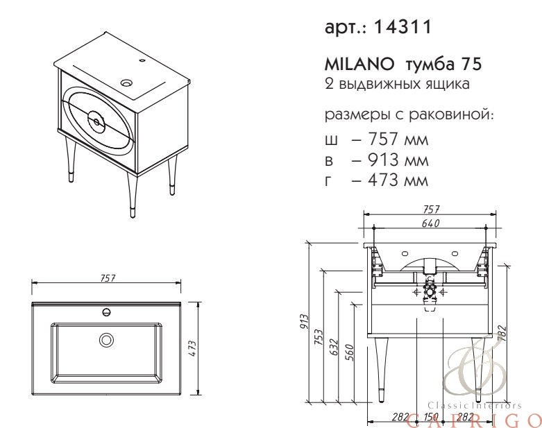 MILANO тумба 75 см выпускается в отделках: чистые эмали категория ЭМАЛИ – SPECIAL ENAMEL category реестра отделок CLASSIC раковина (фаянс) продается отдельно