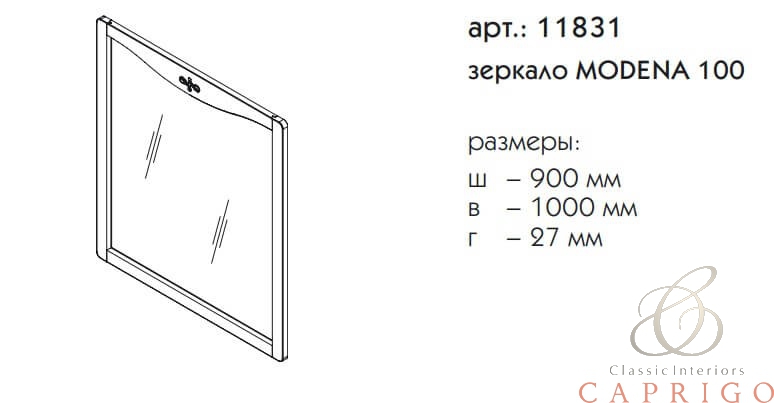 зеркало MODENA 100 выпускается в отделках из Реестра отделок CLASSIC без патинирования. Зеркало без фацета