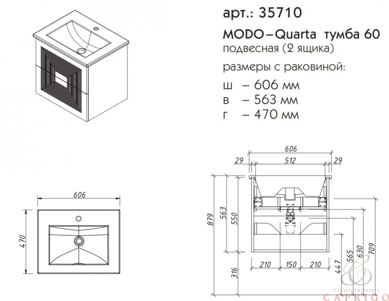MODO–Quarta тумба 60 подвесная 2 ящика производится под заказ в отделках из реестра "MODERN" Фаянсовая раковина продается отдельно