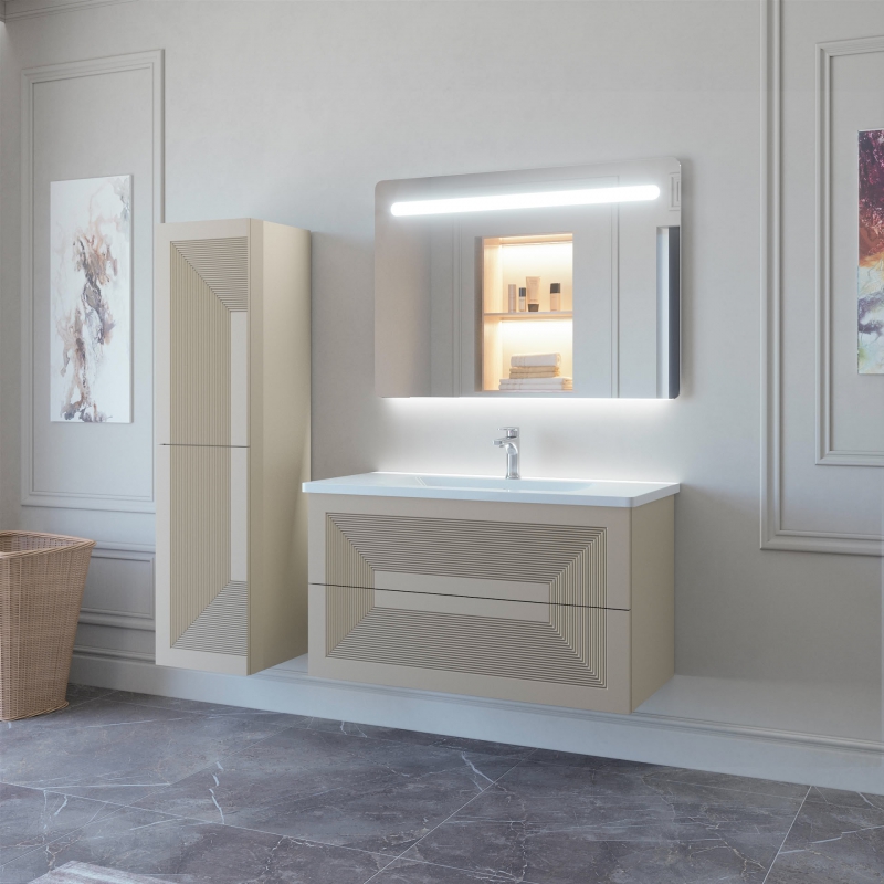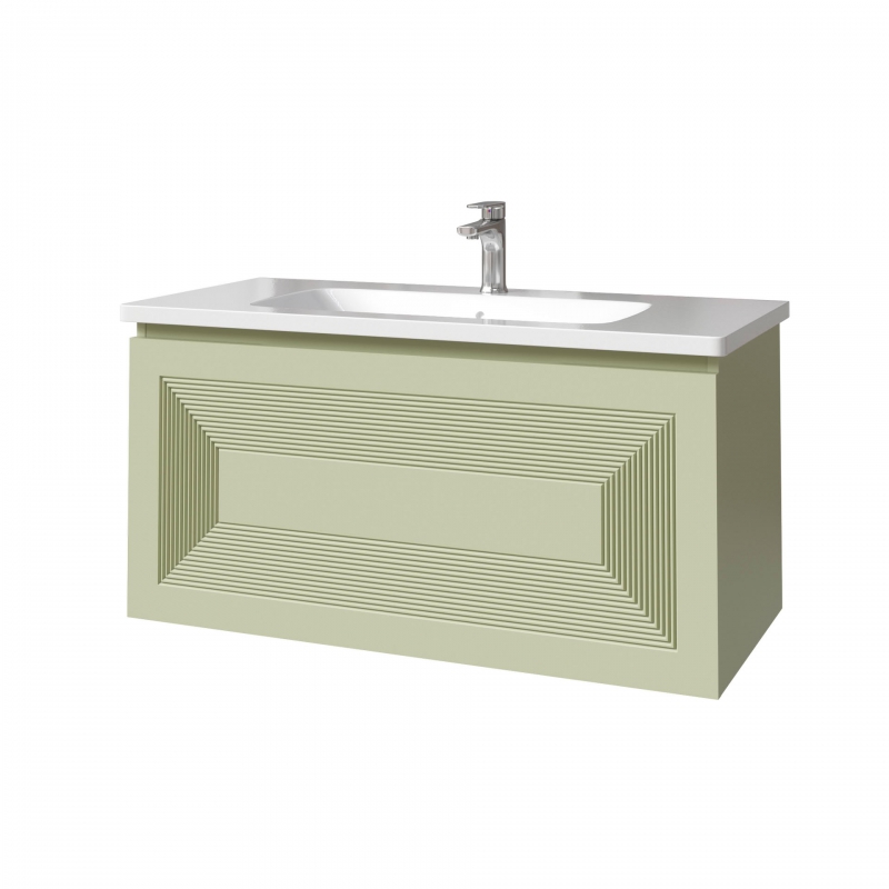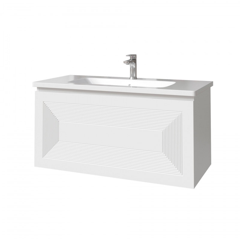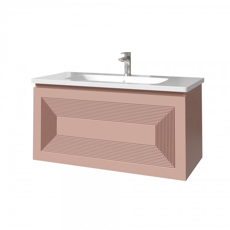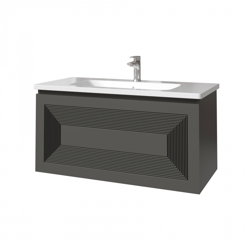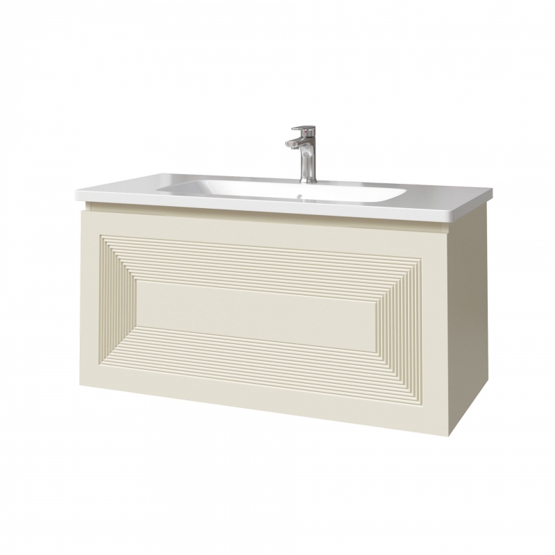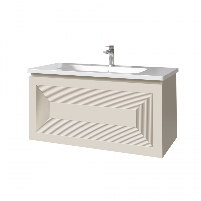 Тумба подвесная для раковины 100см с 2 ящиками (с 1 скрытым ящиком). Ручка интегрирована в фасад. Выпускается в любых отделках из реестра MODERN.