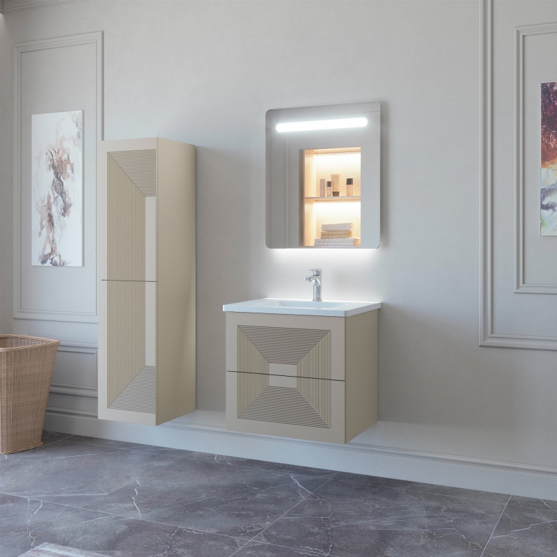 Тумба подвесная для раковины 60см с 2 ящиками. Ручки интегрированные в фасады. Выпускается в Эмалях из реестра "CLASSIC"