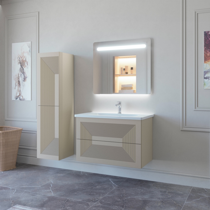 Тумба подвесная для раковины 80см с 2 ящиками. Ручки интегрированные в фасады. Выпускается в Эмалях из реестра "CLASSIC"
