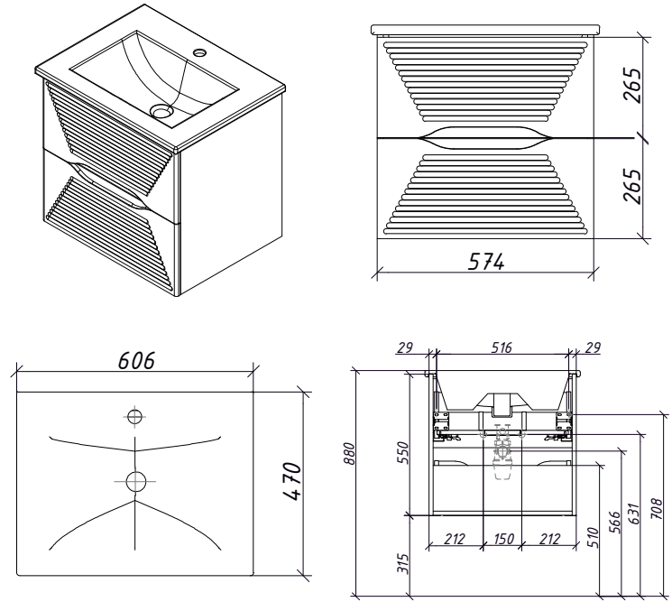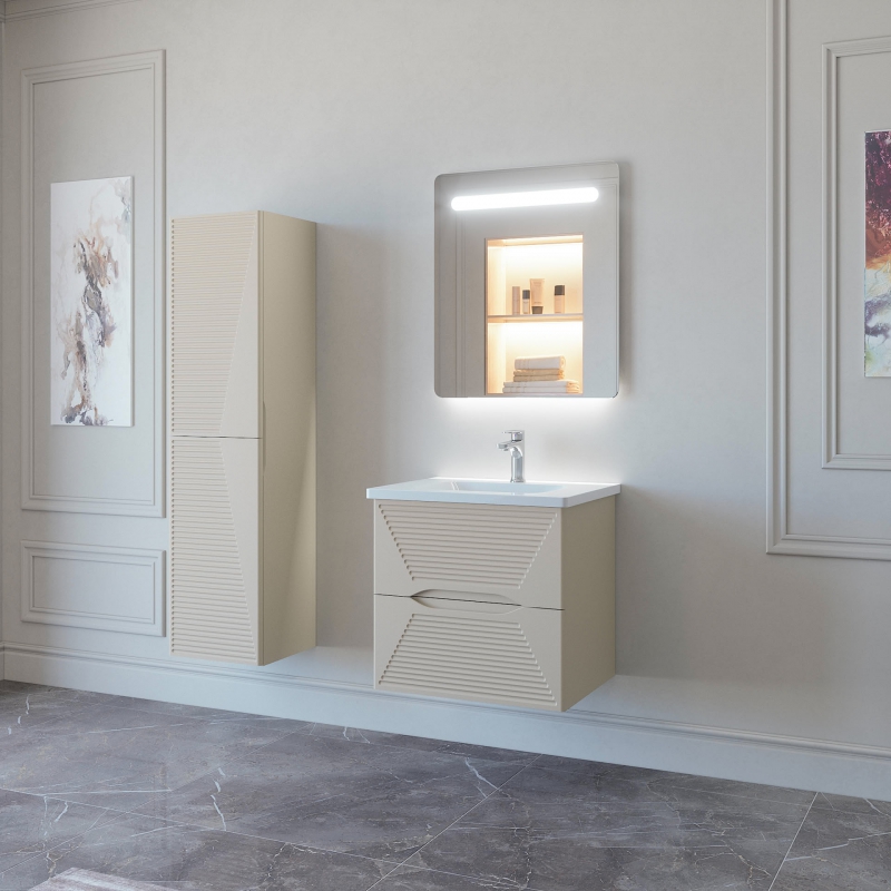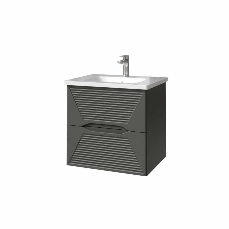 Тумба подвесная для раковины 60см с 2 ящиками. Ручки интегрированные в фасады. Выпускается в любых отделках из реестра MODERN.