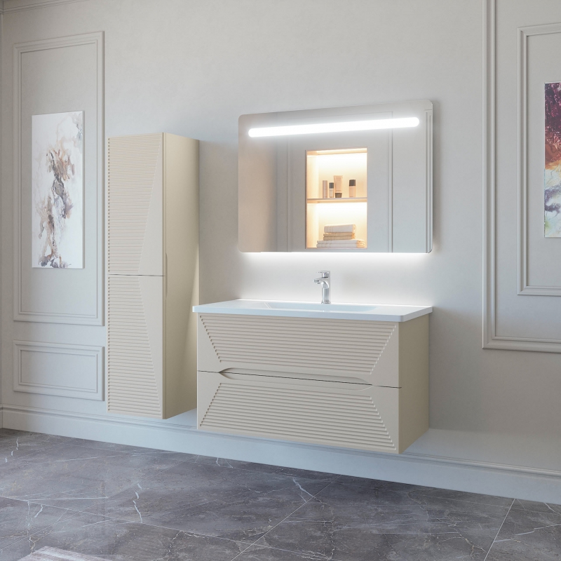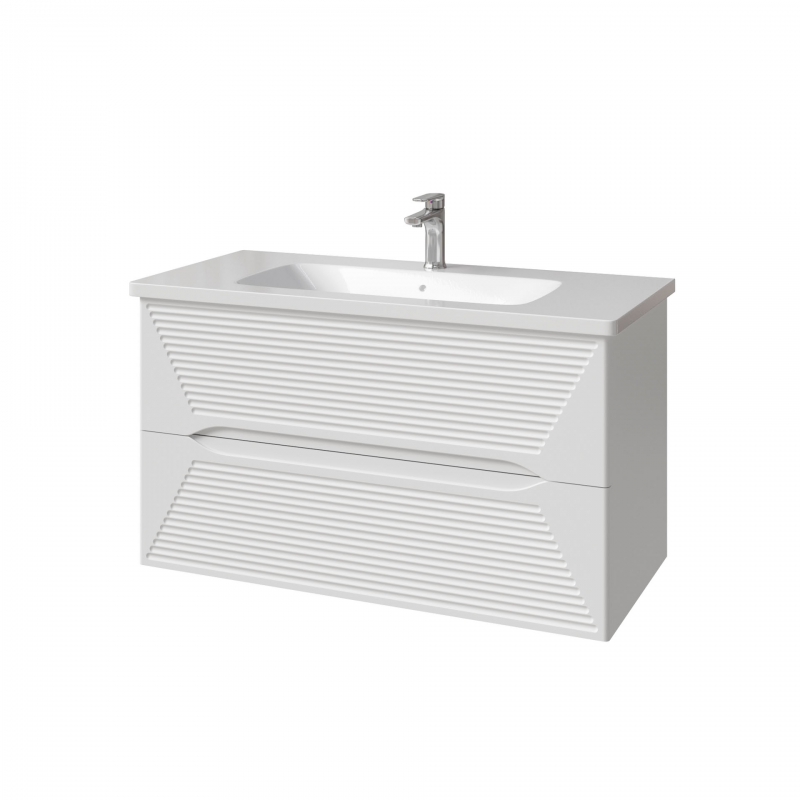 Тумба подвесная для раковины 100см с 2 ящиками. Ручки интегрированные в фасады. Выпускается в Эмалях из реестра "CLASSIC"